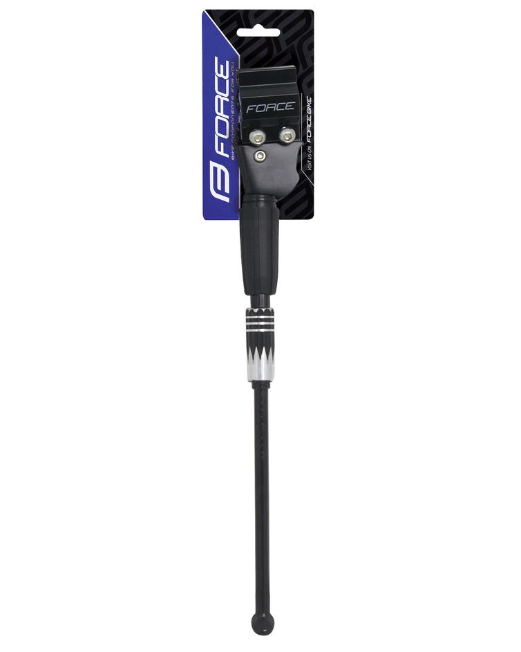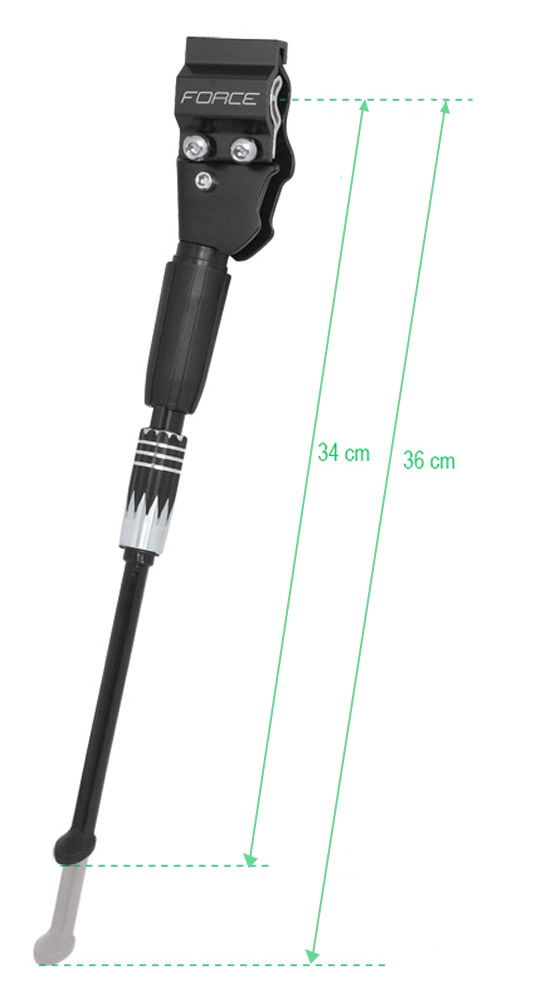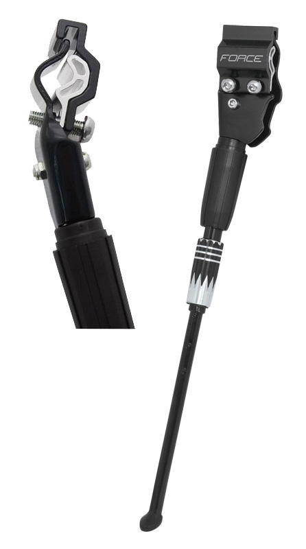 stojan na zadní hranatou rámovou trubku stavitelný: 24" - 29" kola s redukcí na kulatou trubku maximální délka: 36 cm minimální délka: 32,5 cm bez plastové koncovky materiál: hliník hmotnost: 240 g baleno na kartě FORCE