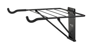 sklopný držák jízdního kola na zeď (2 otvory) pro zavěšení za horní rámovou trubku s plastovou ochranou proti podření rámu nosnost: 15 kg, materiál: ocel hmotnost: 760 g baleno v sáčku