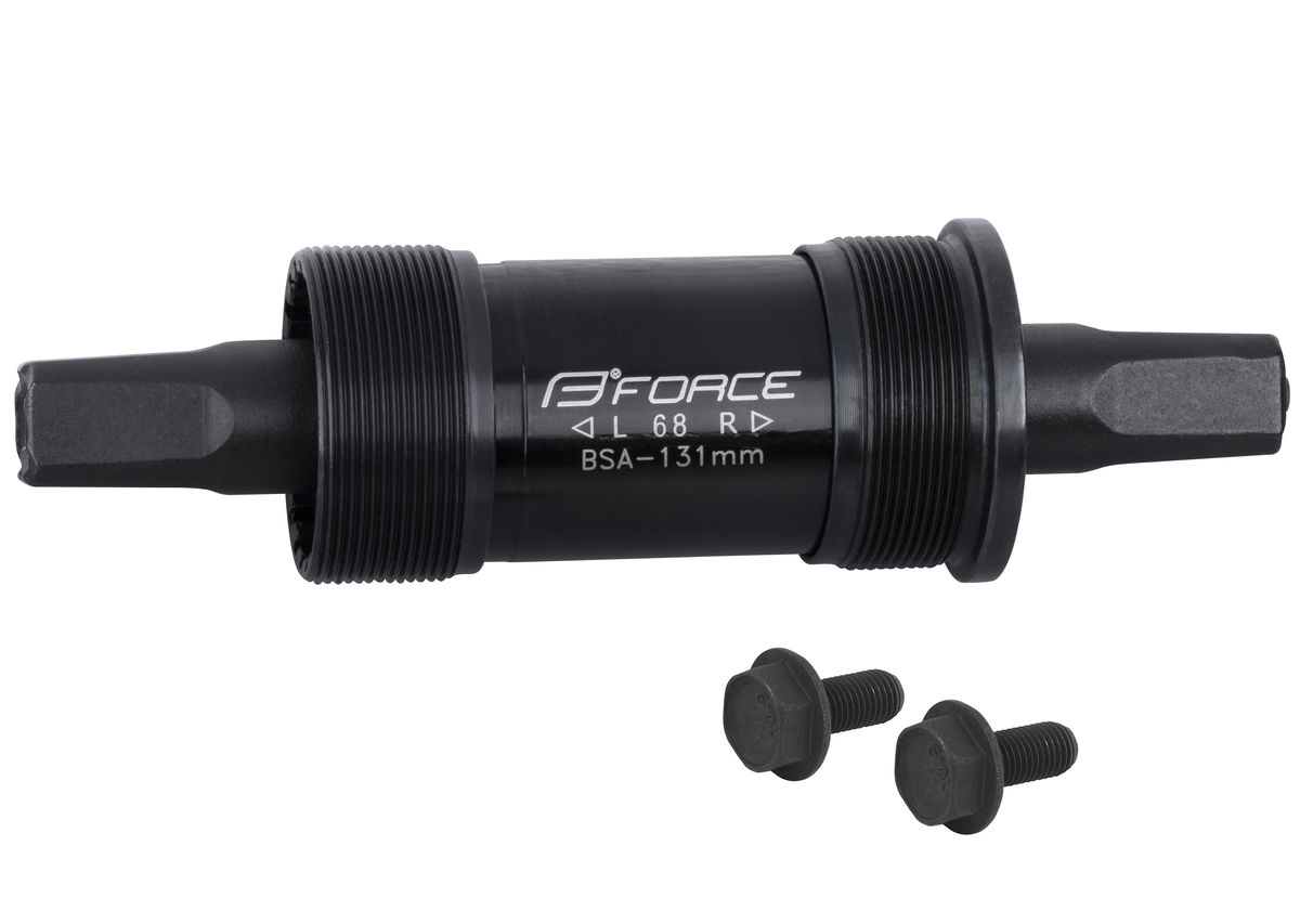 zapouzdřená osa se šrouby černé železné tělo, délka domečku: 68 mm černé železné BSA misky s gumovým těsnícím kroužkem kompatibilní na stahovák SHIMANO 89432, 89418 celková délka osy: 131 mm hmotnost včetně šroubů: 351 g baleno v papírové krabičce FORCE