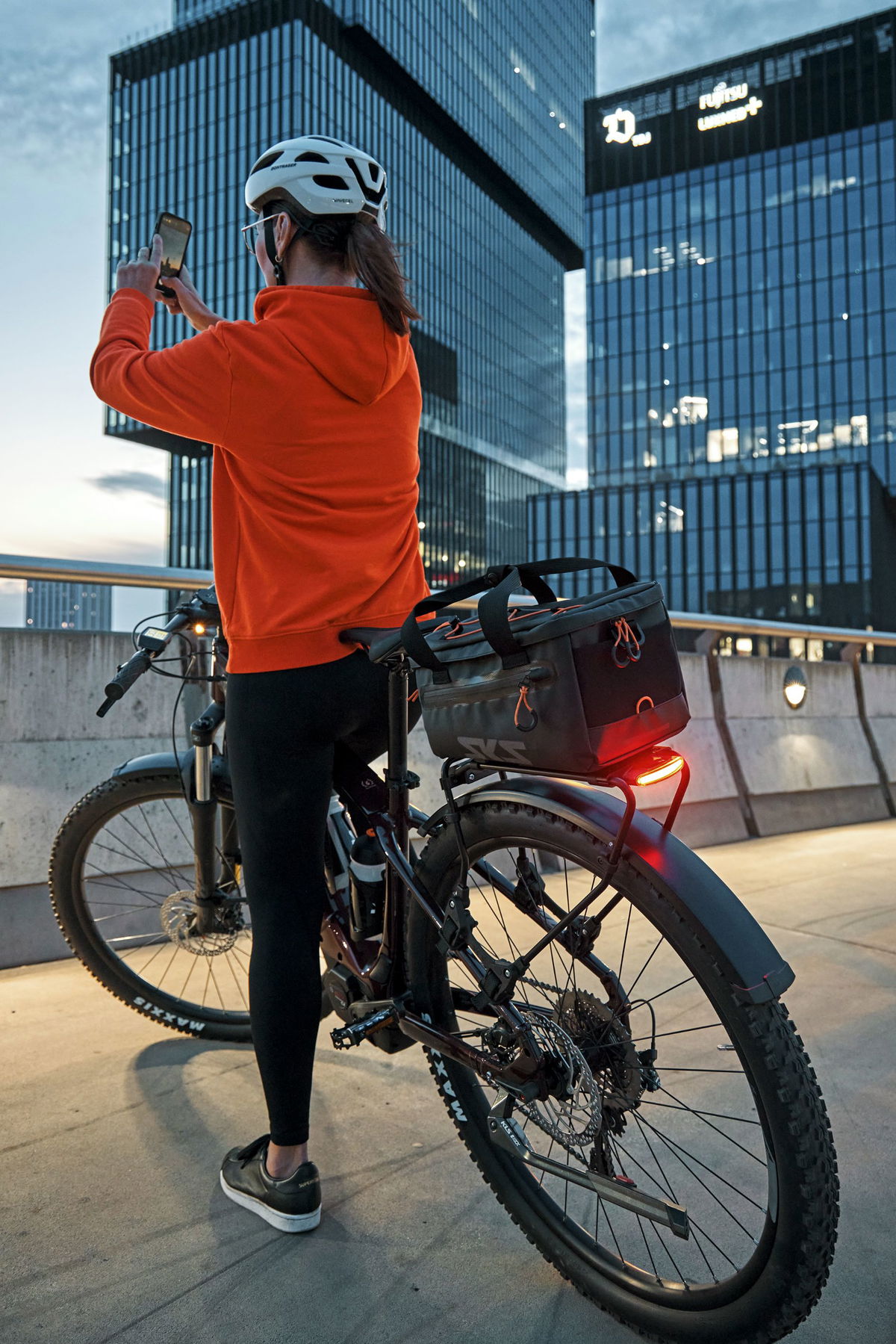 Zadní světlo INFINITY UNIVERSAL s integrovanou baterií lze dobíjet prostřednictvím připojení USB. Zadní světlo je vybaveno bezpečnostním vypínačem a indikátorem nabití baterie. Výdrž baterie je až pět hodin. Se schválením podle německého zákona o provozu na pozemních komunikacích (StVZO).