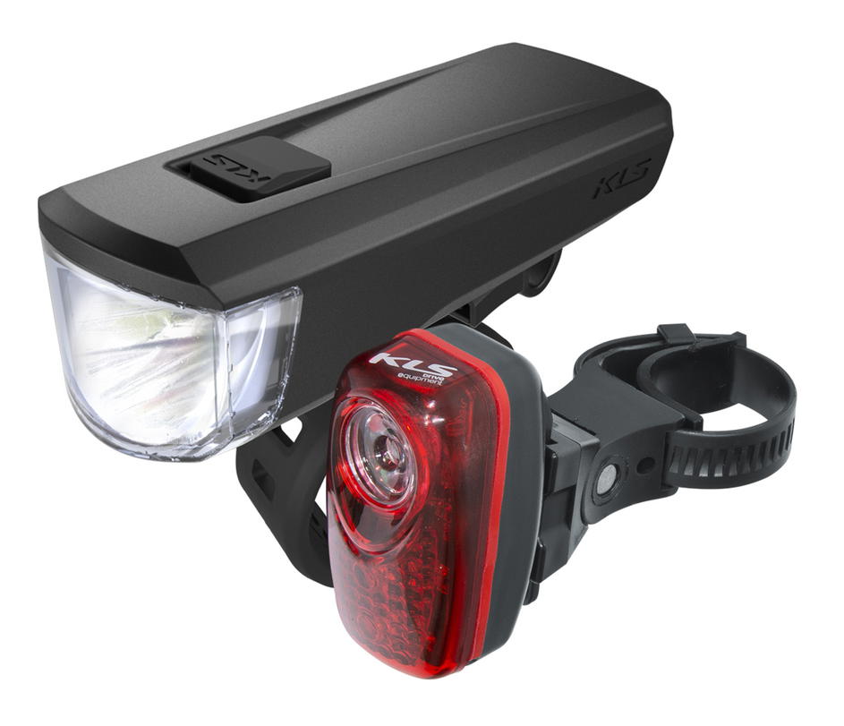 KLS STRIKE Set je bateriemi napájený set osvětlení, který poskytuje vše, co od cyklistického osvětlení potřebujete. Přední světlo s extra širokou optikou dobře osvětluje vše, co je před vámi, zatímco zadní světlo upozorní ostatní řidiče na vaši přítomnost - takže zůstanete v bezpečí.