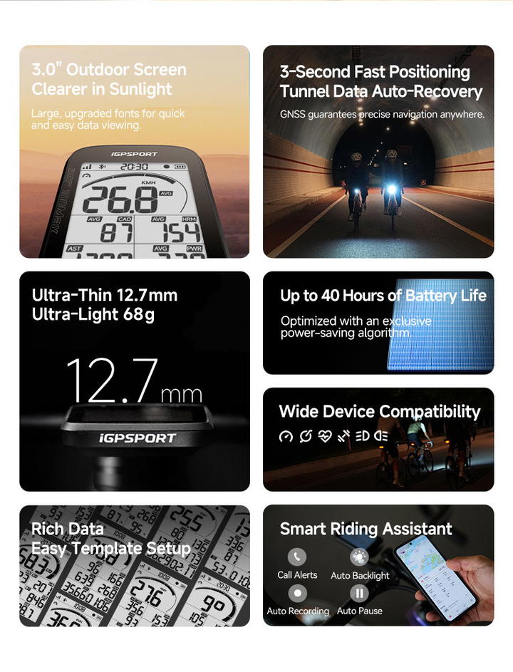 Tento cyklocomputer je navržen pro jezdce, kteří hledají minimalistický design, maximální přehlednost dat a nekompromisní výdrž baterie. Díky ultratenkému tělu a velké obrazovce je ideálním společníkem pro každodenní trénink i dlouhé výlety.