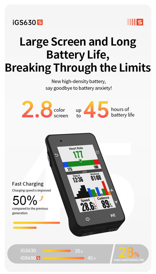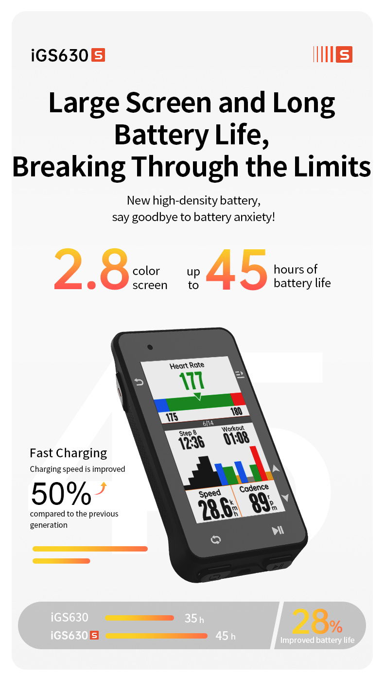 iGPSport iGS630S je pokročilá cyklistická GPS navigace, ideální pro silniční i horské cyklisty. Nabízí 2,8" barevný nedotykový displej (240×400 px) v aerodynamickém těle s výškou pouhých 16,5 mm.
