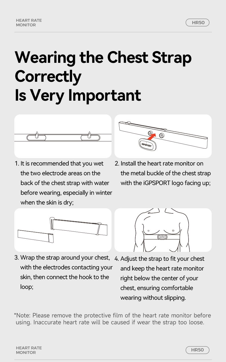 Hrudní pás iGPSport HR50 je přesný a spolehlivý monitor srdečního tepu, který využívá technologii dvojitého přenosu Bluetooth 5.0 a ANT+ pro bezproblémové propojení s chytrými telefony, cyklopočítači, sportovními hodinkami a dalšími zařízeními. Díky ergonomickému designu a nastavitelnému elastickému pásu je pohodlný i při dlouhodobém nošení. Je voděodolný (stupeň krytí IPX7), což zajišťuje odolnost vůči potu i nepříznivým podmínkám. Ideální pro cyklistiku, běh, fitness trénink i další sportovní aktivity.