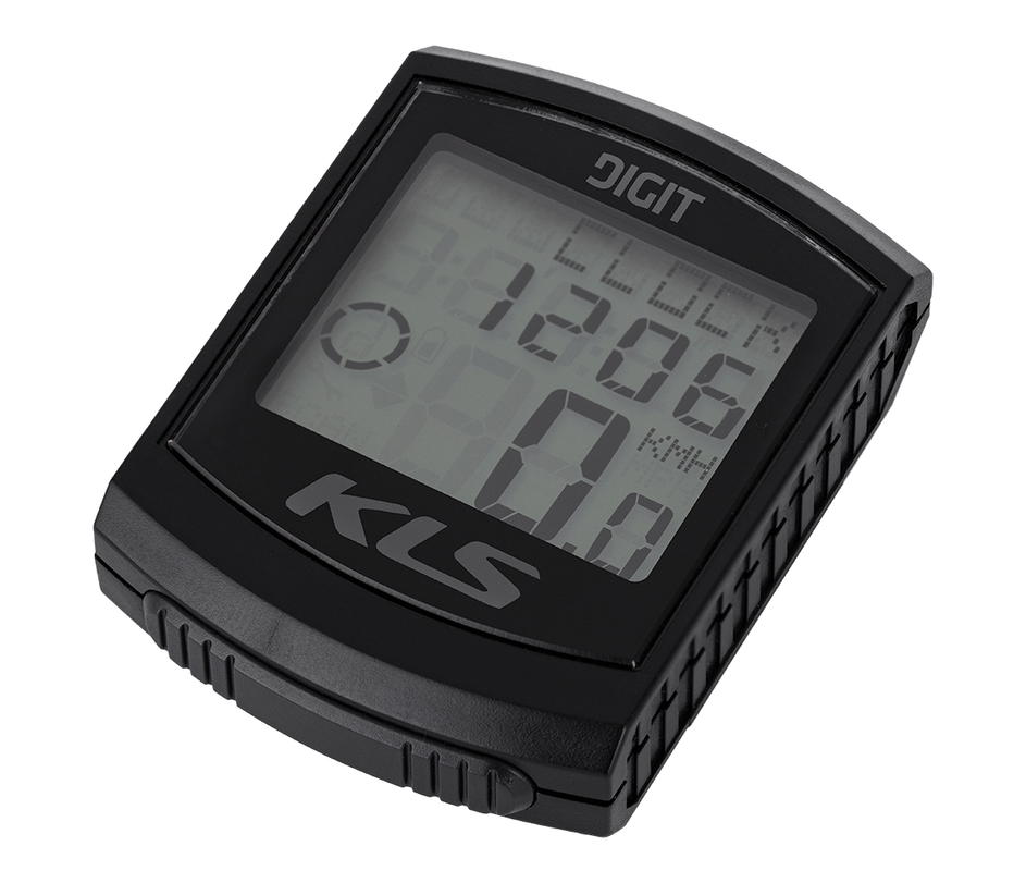 Přehledný dvouřádkový LCD displej, držák cyklopočítače se systémem Click - uchycení na řídítka kola.