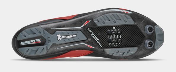 Podešev Gaerne EPS Lightweight Carbon Fiber MTB Sole 10.0, vyvinutá ve spolupráci s Michelin®, má karbonovou strukturu zajišťující vynikající tuhost a lehkost pro výkonné šlapání. Pryžový běhoun Michelin® zajišťuje maximální odolnost proti oděru a vyniká i v extrémních podmínkách, zatímco design profilu nabízí výjimečnou přilnavost a trakci. Rozestupy mezi běhouny usnadňují účinné samočištění a rychlé odvádění bláta.