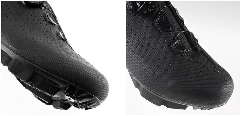 Svršek z mikrovlákna je perforovaný, aby optimalizoval prodyšnost a ventilaci a zajistil svěží a suché nohy po celou dobu jízdy. Vnitřní část boty je vybavena síťovinou, která poskytuje oporu noze a zlepšuje stabilitu. Systém zapínání, vybavený kolečkem BOA L6 s možností mikronastavení, zajišťuje přesné, rychlé a přizpůsobené zapínání a zabraňuje vzniku tlakových bodů.