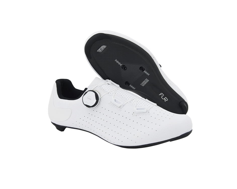 Silniční tretry FLR F-5 Carbon jsou navrženy pro ambiciózní jezdce, kteří hledají kombinaci pohodlí, tuhosti a efektivního přenosu síly. Lehká a pevná karbonová podrážka R500 poskytuje maximální tuhost pro perfektní přenos energie na pedály, zatímco pohodlný svršek z mikrovlákna a strategicky umístěné větrací otvory zajišťují komfort i při dlouhých vyjížďkách. Díky systému zapínání ATOP si snadno přizpůsobíte fit přesně podle svých potřeb.