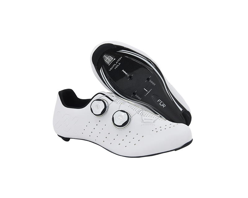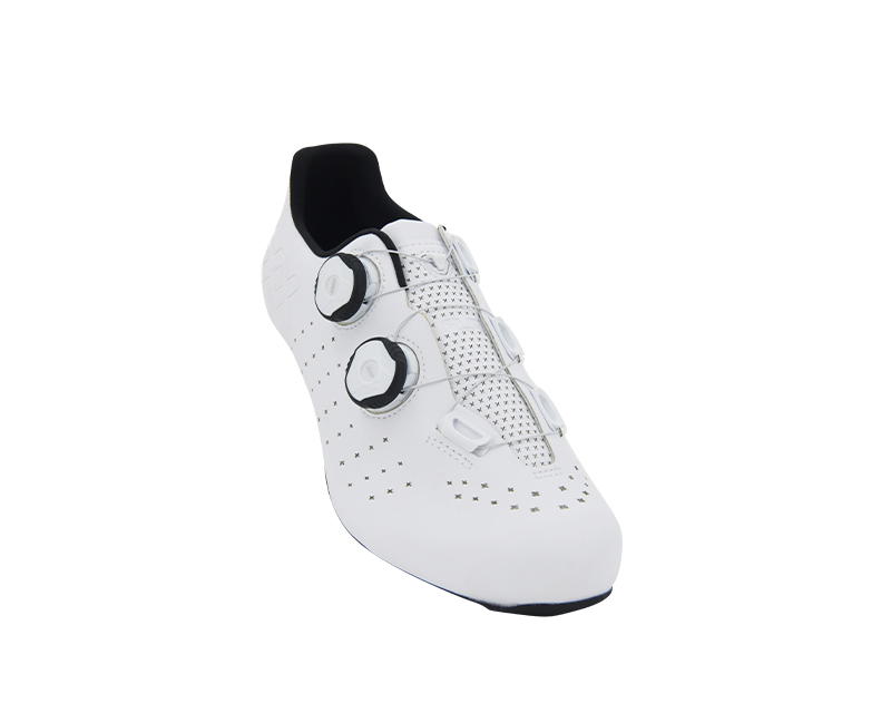 Silniční tretry FLR F-9 Carbon posouvají výkon na silnici na novou úroveň. Extrémně tuhá karbonová podrážka zajišťuje bezchybný přenos síly do pedálů, zatímco aerodynamický střih a nízká hmotnost podporují maximální efektivitu při každém šlápnutí. Díky preciznímu upínání pomocí dvojitého systému Atop získáš pohodlné a přesné dotažení i během jízdy, a to bez kompromisů.