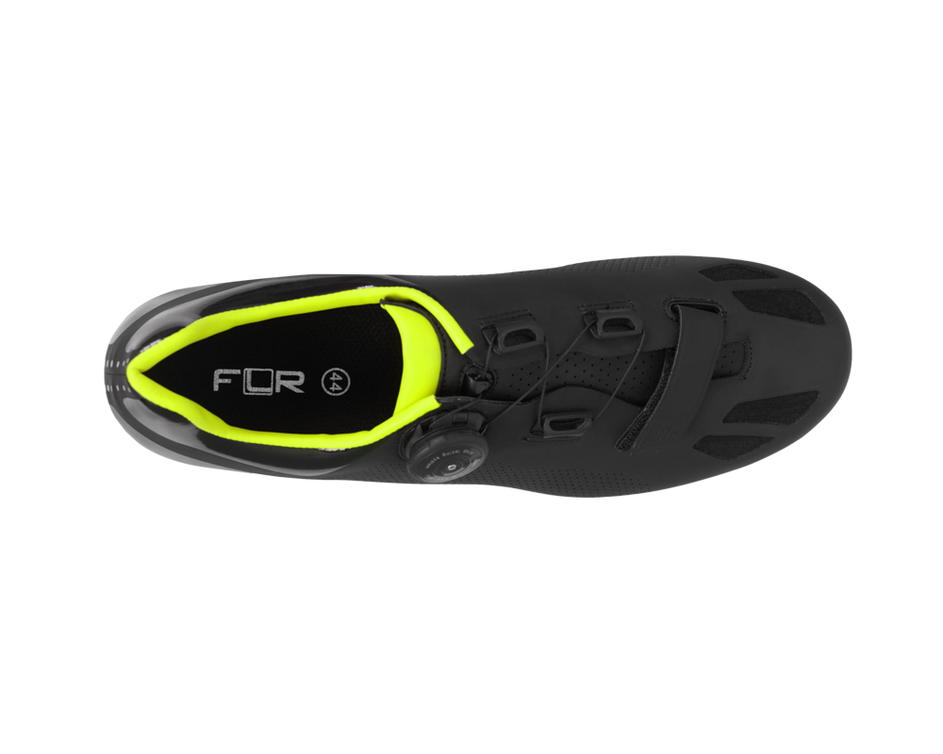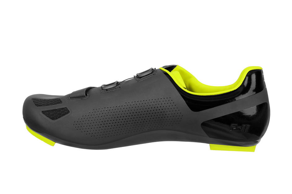 Model F-11 využívá bezešvou konstrukci svršku tvořenou z jednoho kusu prvotřídního mikrovlákna, který se přizpůsobí tvaru vaší nohy. Systém šněrování je založen na jediném kolečku Atop a pásce na suchý zip. Zapínání je tak jednoduché a bezpečné. Kombinace otvorů z nylonové síťoviny, perforovaných otvorů a prodyšného jazyka slouží k ventilaci. Model F-11 je vybaven podrážkou R250, která zvyšuje výkon a přenos síly do pedálů. Přesto tretry zůstávají lehké a pohodlné.