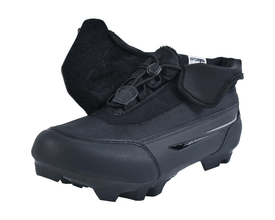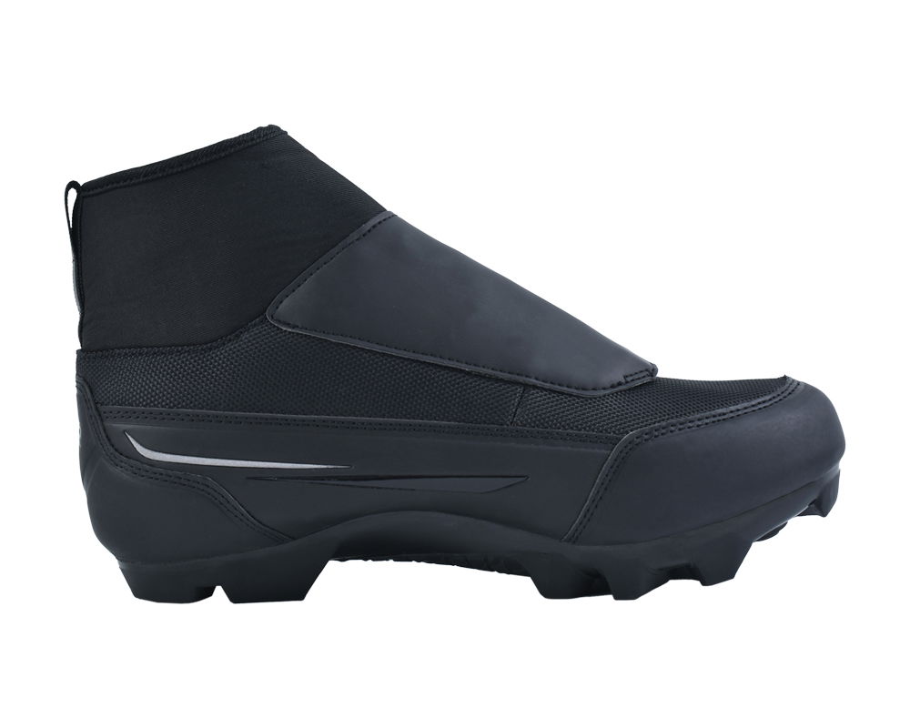 Podrážka M250 je vybavena protiskluzovými výstupky a volitelnými hroty na špičce, které zajišťují spolehlivou trakci, stabilitu při chůzi a silný tah do pedálů. Díky jednoduchému systému šněrování a velkému zapínání na suchý zip se nemusíte bát ani obouvání v rukavicích. Reflexní prvky pak pomohou s viditelností i za zhoršených podmínek.
