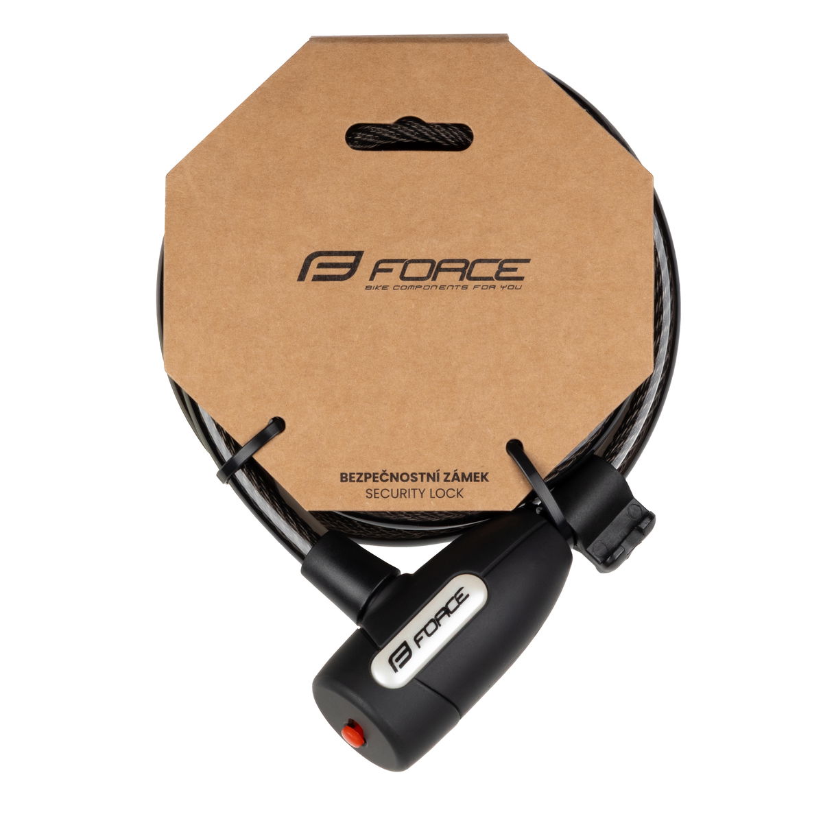 spirálový zámek FORCE délka lanka: 180 cm, průměr: 12 mm uzamykání na klíček, 2 ks klíčků hmotnost: 478 g baleno na kartě FORCE