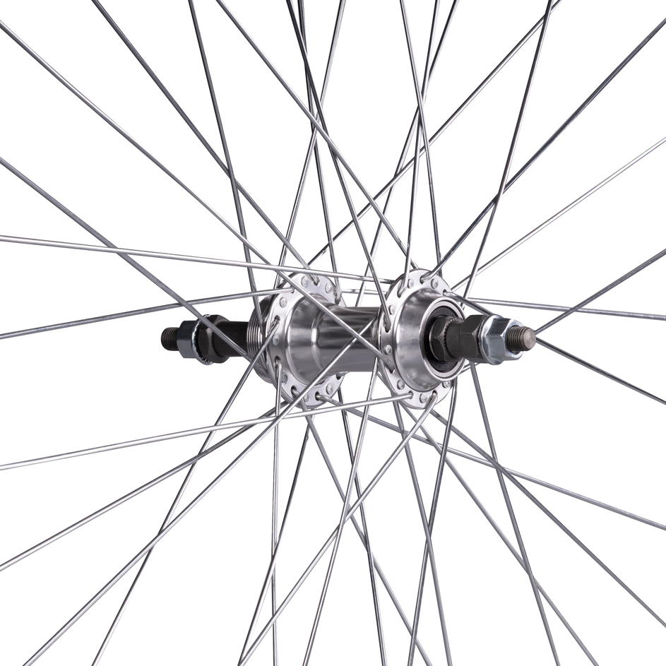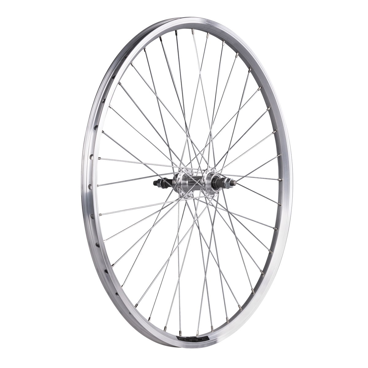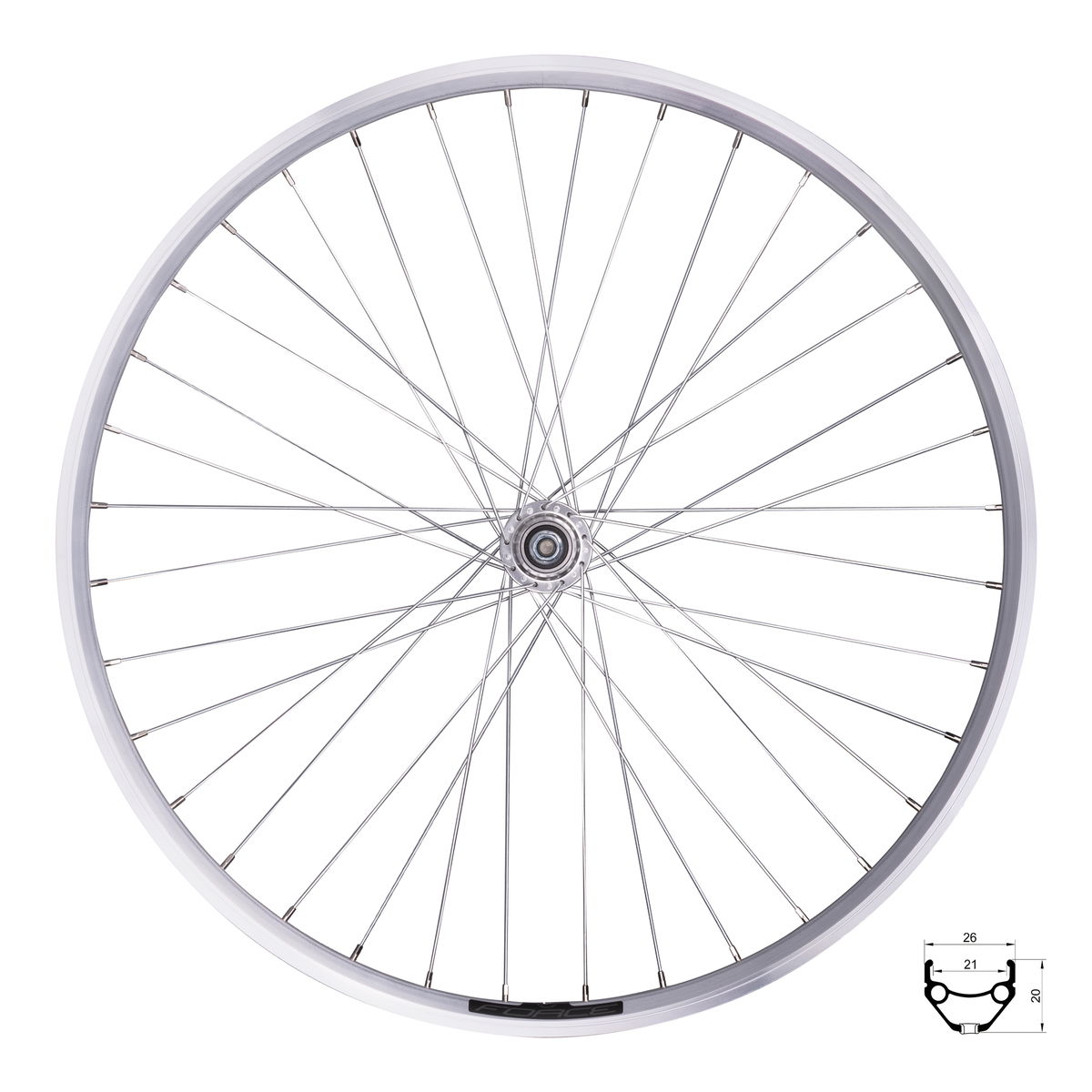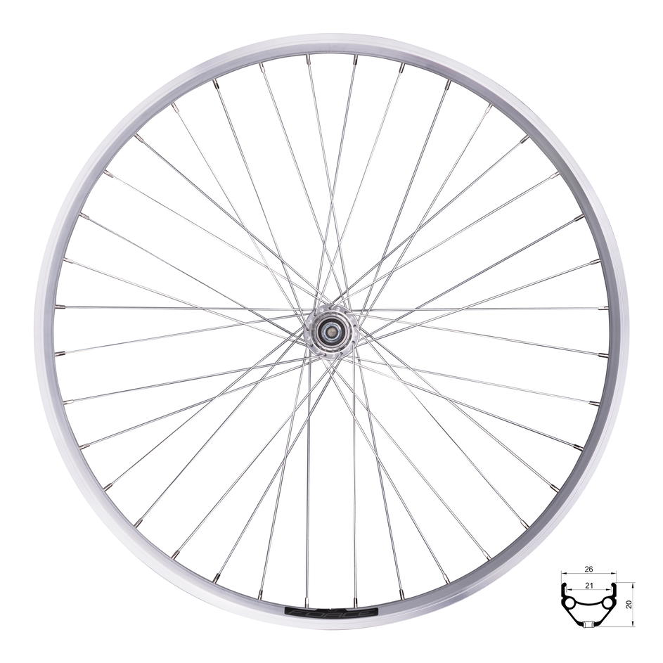 náboj FORCE 80429 průmyslová ložiska, osa: 3/8" x 175 x 135 mm, na matice vhodný pro 5 - 7 kolečko ráfek 26" FORCE PRIME 559x21 36 děr, bez nýtů, CNC obráběné brzdné plochy výška ráfku: 20 mm, otvor pro ventilek: 8,5 mm materiál ráfku: Al hliník, stříbrný natural materiál drátů: pozink, stříbrné…
