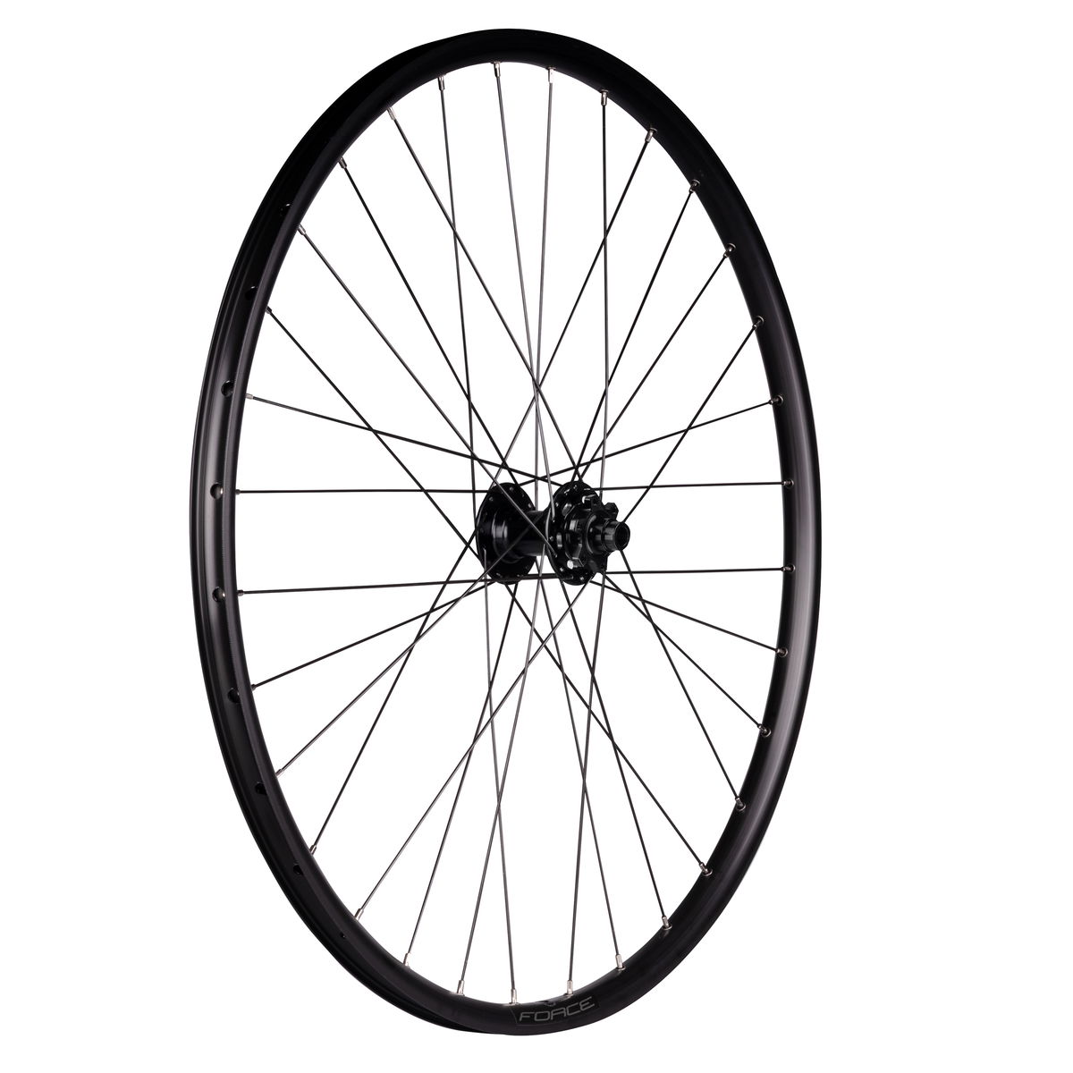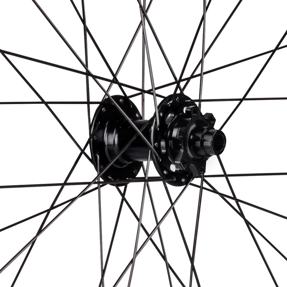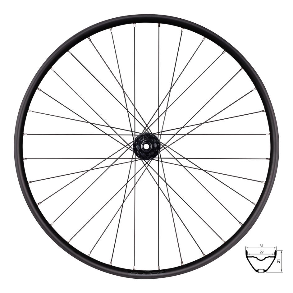 náboj FORCE 804384 pro 6 děrové brzdové kotouče průmyslová ložiska, osa: 15 x 100 mm ráfek 29" FORCE XC DISC 622x27, tubeless ready 32 děr, jednoduché nýty výška ráfku: 21 mm, otvor pro ventilek: 6,5 mm materiál ráfku: Al hliník, černý materiál drátů: nerez, černé hmotnost: 1 051 g