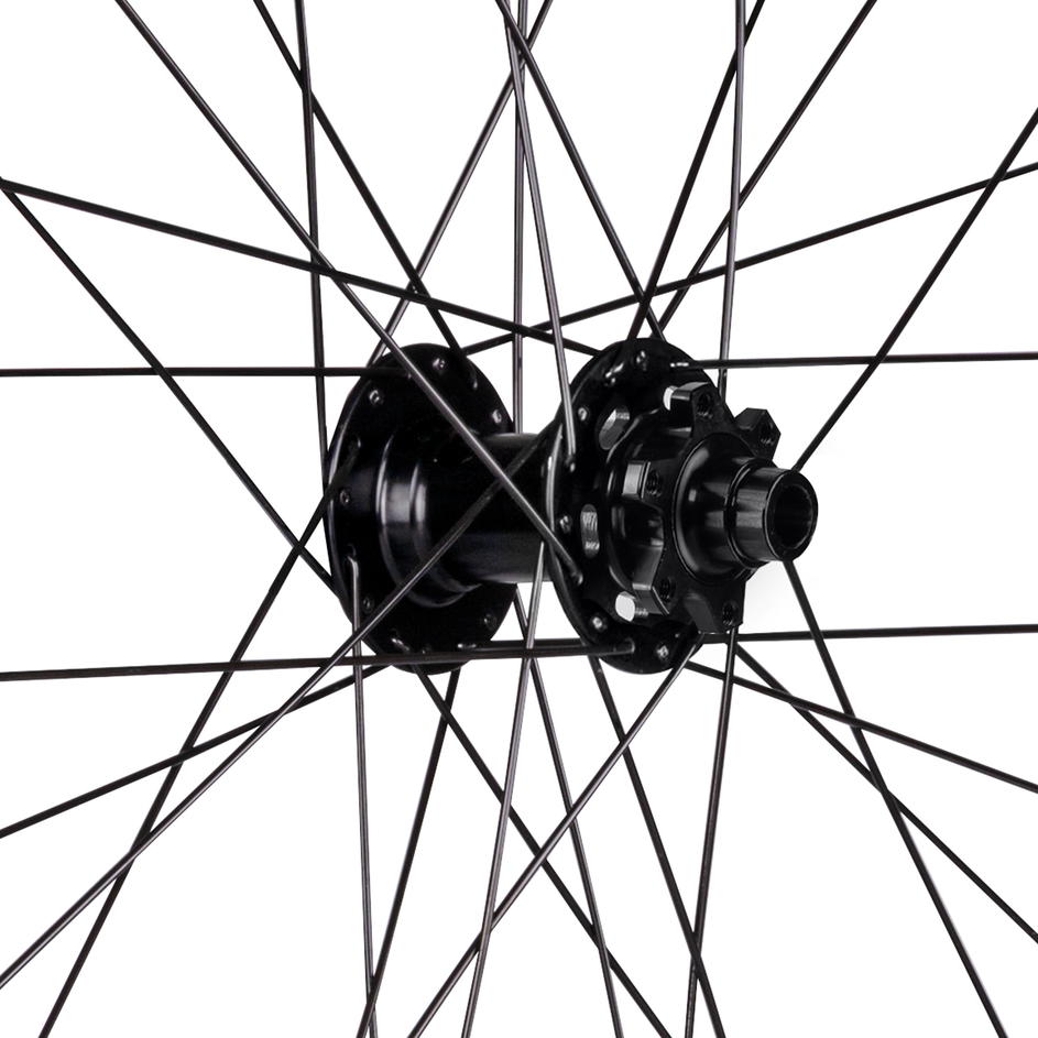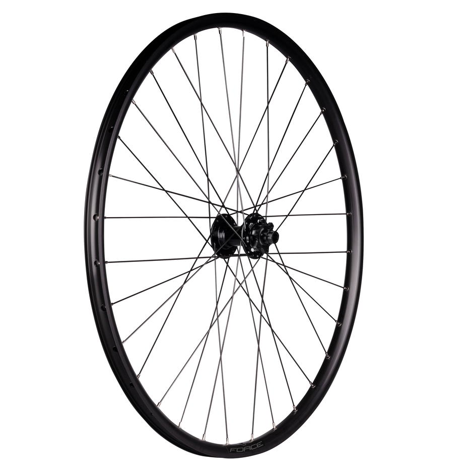 náboj FORCE 804385 pro 6 děrové brzdové kotouče průmyslová ložiska, osa: 15 x 110 mm ráfek 29" FORCE XC DISC 622x27, tubeless ready 32 děr, jednoduché nýty výška ráfku: 21 mm, otvor pro ventilek: 6,5 mm materiál ráfku: Al hliník, černý materiál drátů: nerez, černé hmotnost: 1 051 g