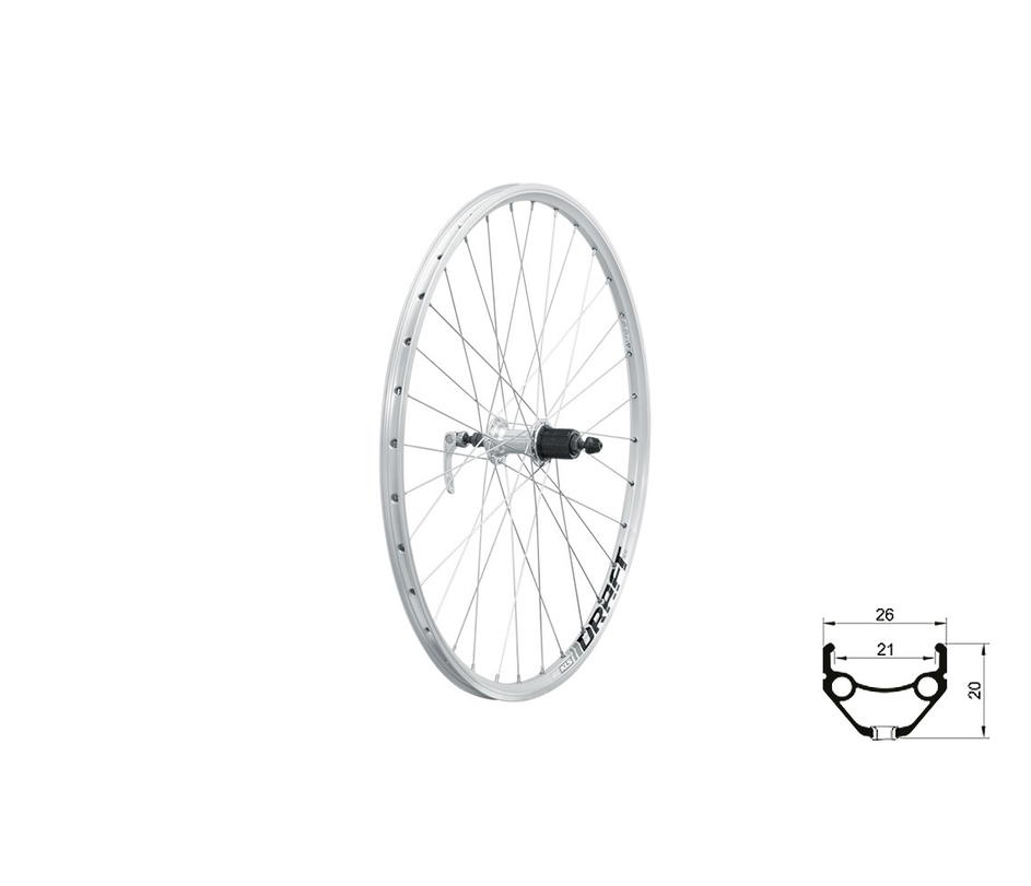 Zapletené kolo zadní KLS DRAFT V-brake R, 26", silver