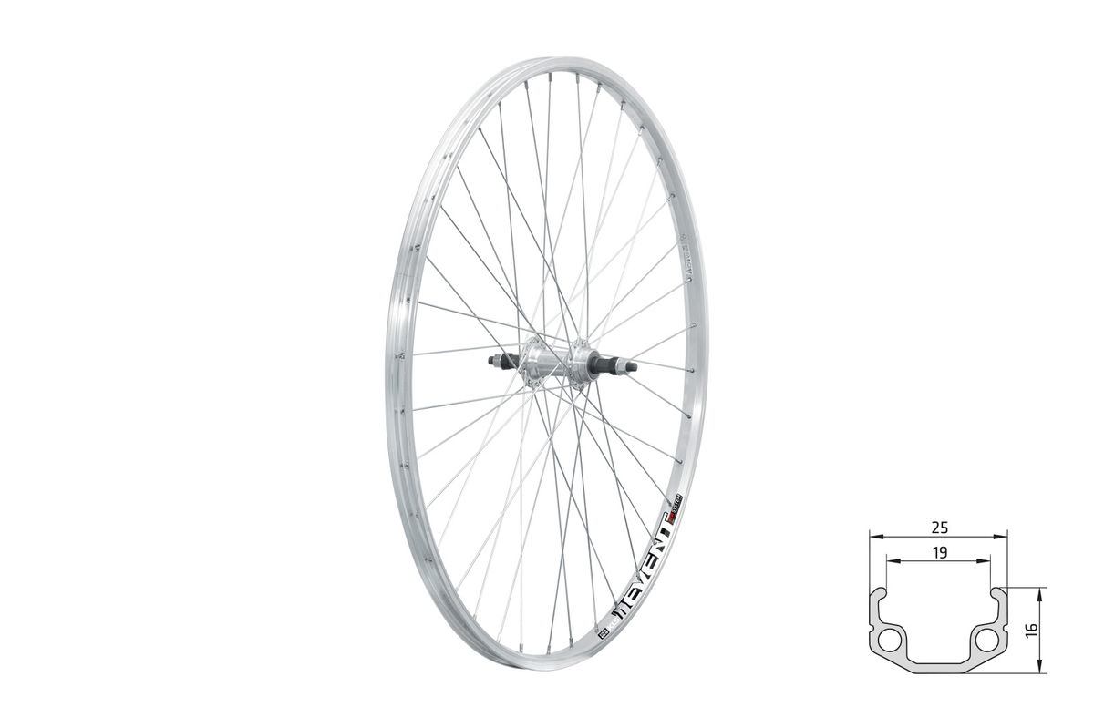 Zapletené koleso KLS EVENT V-brake R je určené pre cenovo dostupné bicykle s jednovrstvovým ráfikom, s V-brzdami, upínaním pomocou osky s maticou, a nábojom s voľnobehom.