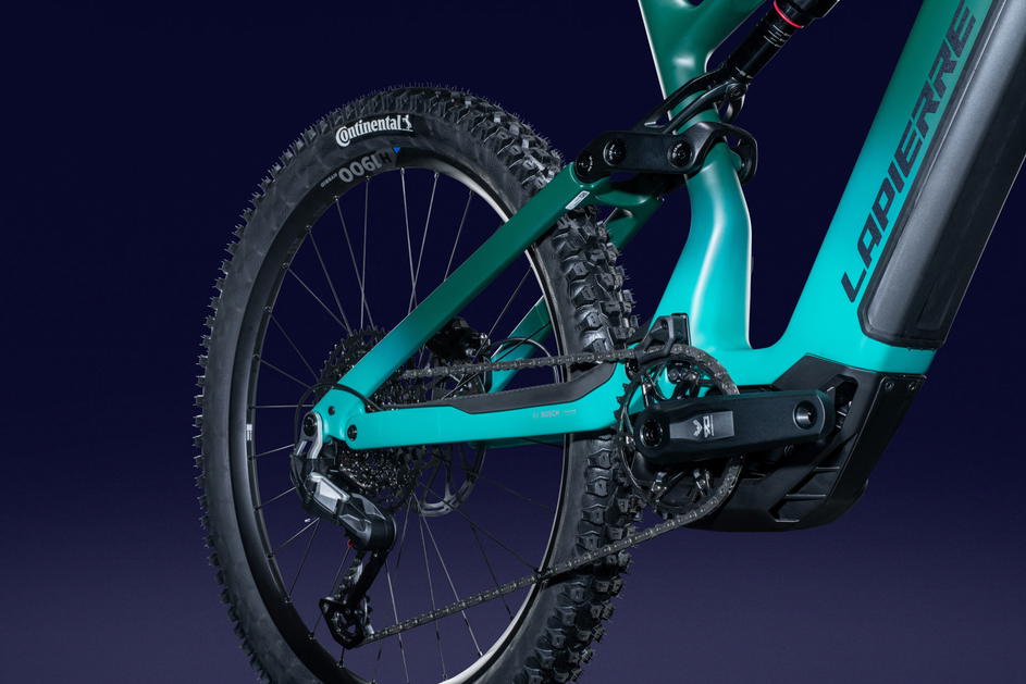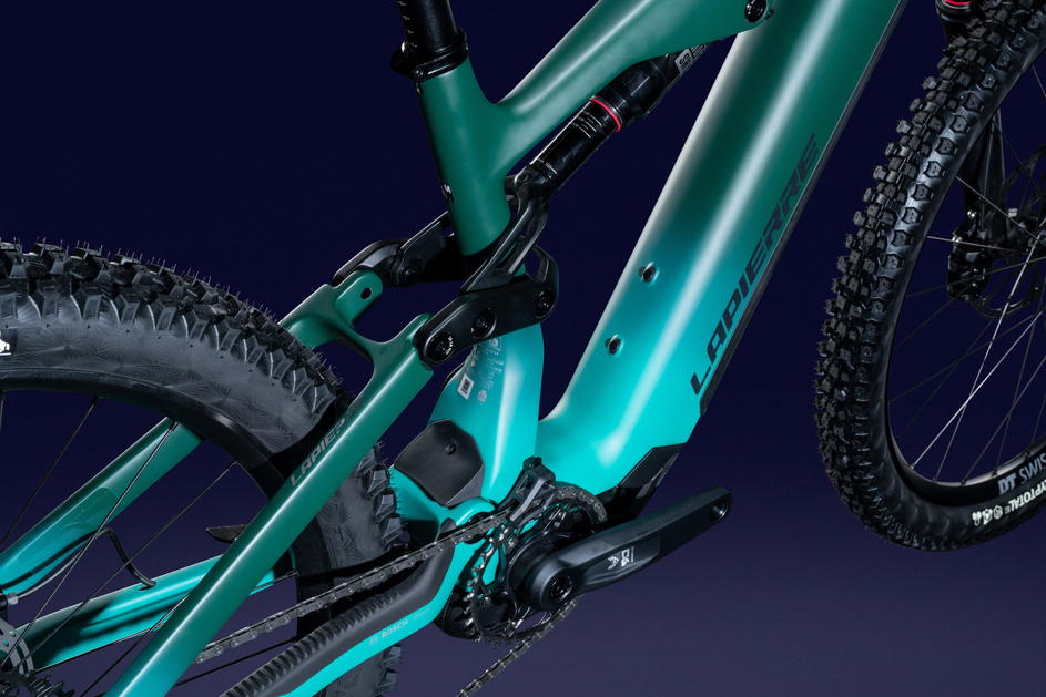 Lapierre Overvolt AM CF je vysoce výkonné All-Mountain elektrokolo navržené pro rychlost, kontrolu a nekompromisní agilitu. Jeho základem je zcela přepracovaný celokarbonový rám, který kombinuje vlákna Mitsubishi 24T (Standard modulus) a 40T (High modulus), čímž optimalizuje poměr tuhosti a hmotnosti při zachování kontrolované poddajnosti. S hmotností pouhých 2,9 kg (ve velikosti M, bez tlumiče) tato platforma spojuje klasickou čtyř-čepovou kinematiku s horním uložením tlumiče. Výsledkem je velmi citlivá zadní stavba v horní části komprese, doprovázená konstantním projevem po zbytek trajektorie. Spolu s horním uchycením tlumiče, rám disponuje štědrým prostorem pro láhev a pro použití teleskopických sedlovek s vysokým zdvihem napříč všemi velikostmi.