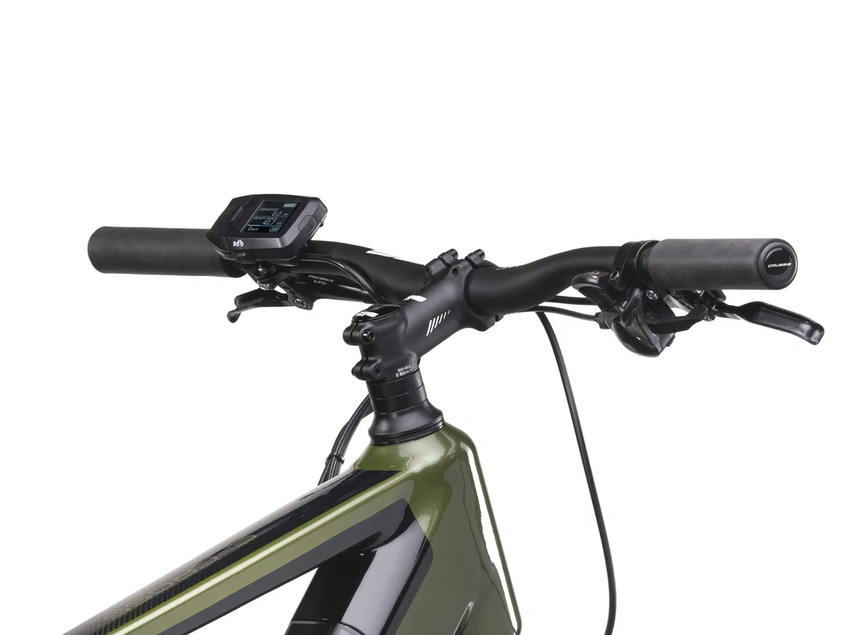 Elektrokolo e-Cross 7.10-(720 Wh) je vybaveno vidlicí SUNTOUR NEX HLO DS 700c pro pohodlnou jízdu a barevným LCD displejem PANASONIC, který zobrazuje všechny klíčové údaje o vaší jízdě. Moderní černo-šedý design se žlutými akcenty dodává tomuto modelu styl, který si zamilujete na každém vašem dobrodružství.