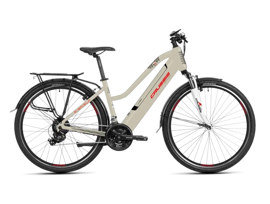 Hledáte elektrokolo na pohodlné ježdění a výlety všeho druhu? Chcete vyrazit za hranice všedních dnů, s partnerem nebo partnerkou, s dětmi, s přáteli? Nenechat se limitovat profilem nebo délkou výletu? Pak je elektrokolo e-Savela 1.9-(612 Wh) s extra silnou baterií právě pro vás. Bát se nemusíte ani deště. Součástí výbavy e-kola jsou totiž kromě stojánku a nosiče také blatníky. Není na co čekat. E-bike Crussis e-Savela 1.9-(612 Wh) je připraven pro vaše první šlápnutí do pedálů. Je čas vyrazit! Pokud byste přesto zatoužili po modelu se středovým elektromotorem a lepší doplňkovou výbavou (vidlice, přehazovačka,…), koukněte na e-kolo e-Savela 7.10.