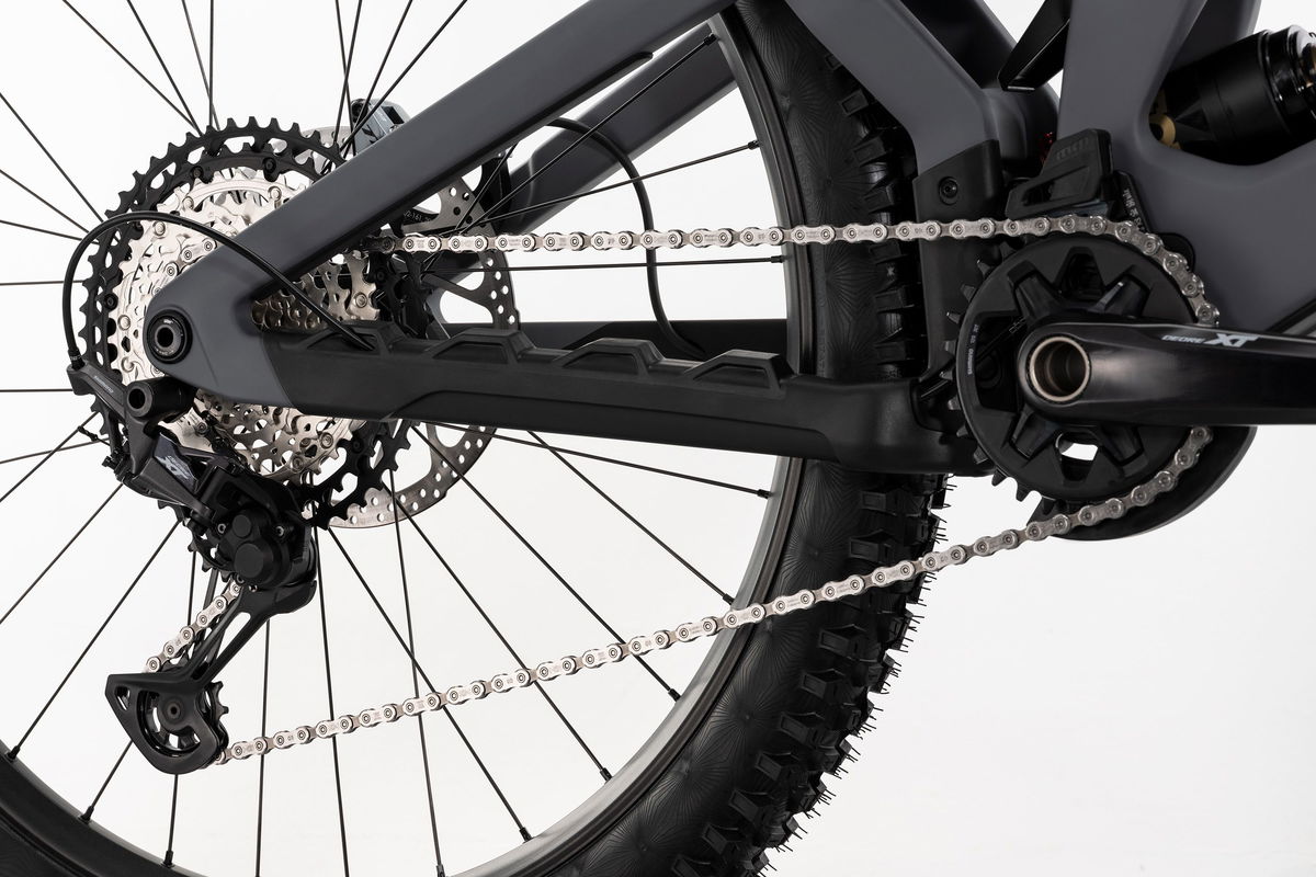 Karbonový rám je testován dle normy kategorie 5 a je schválený pro celkovou hmotnost až 120 kg (hmotnost kola a jezdce). Pokročilá kinematika ukazuje své přednosti v náročném terénu – optimalizovaný úhel tlumiče zajišťuje citlivou a kontrolovanou odezvu i při tvrdých dopadech. Tlumič umístěný nízko snižuje těžiště kola a zvyšuje jeho obratnost – zejména v zatáčkách, při rychlých změnách směru a na strmých technických sjezdech.