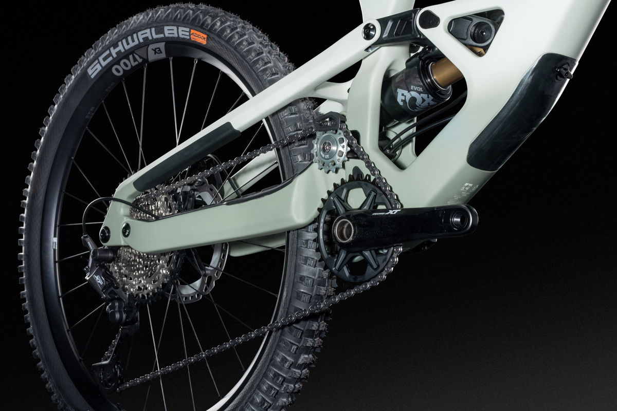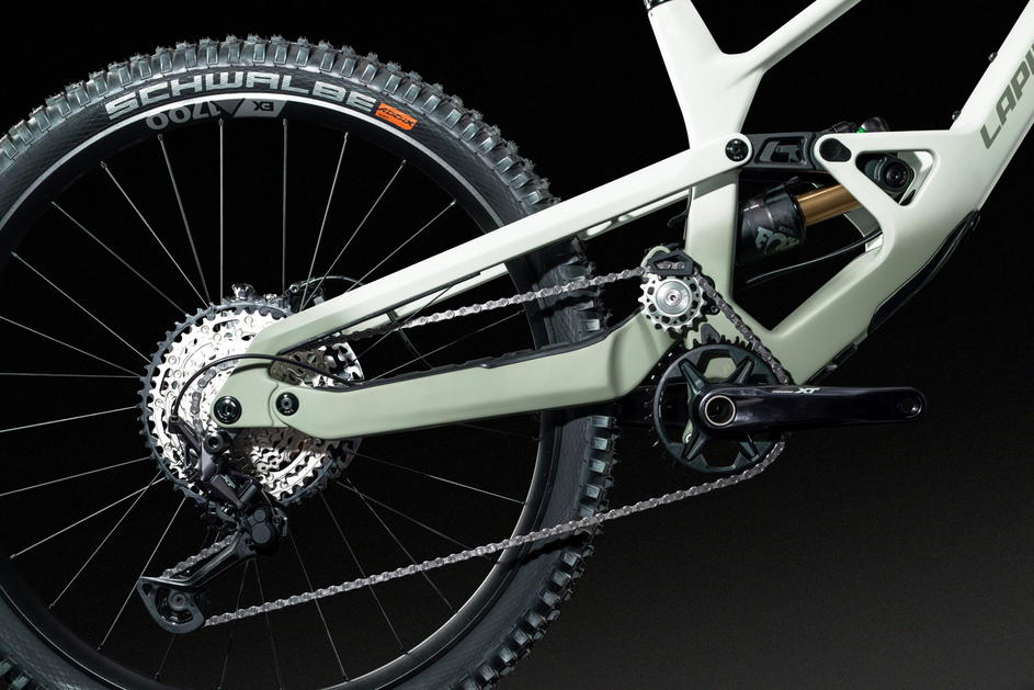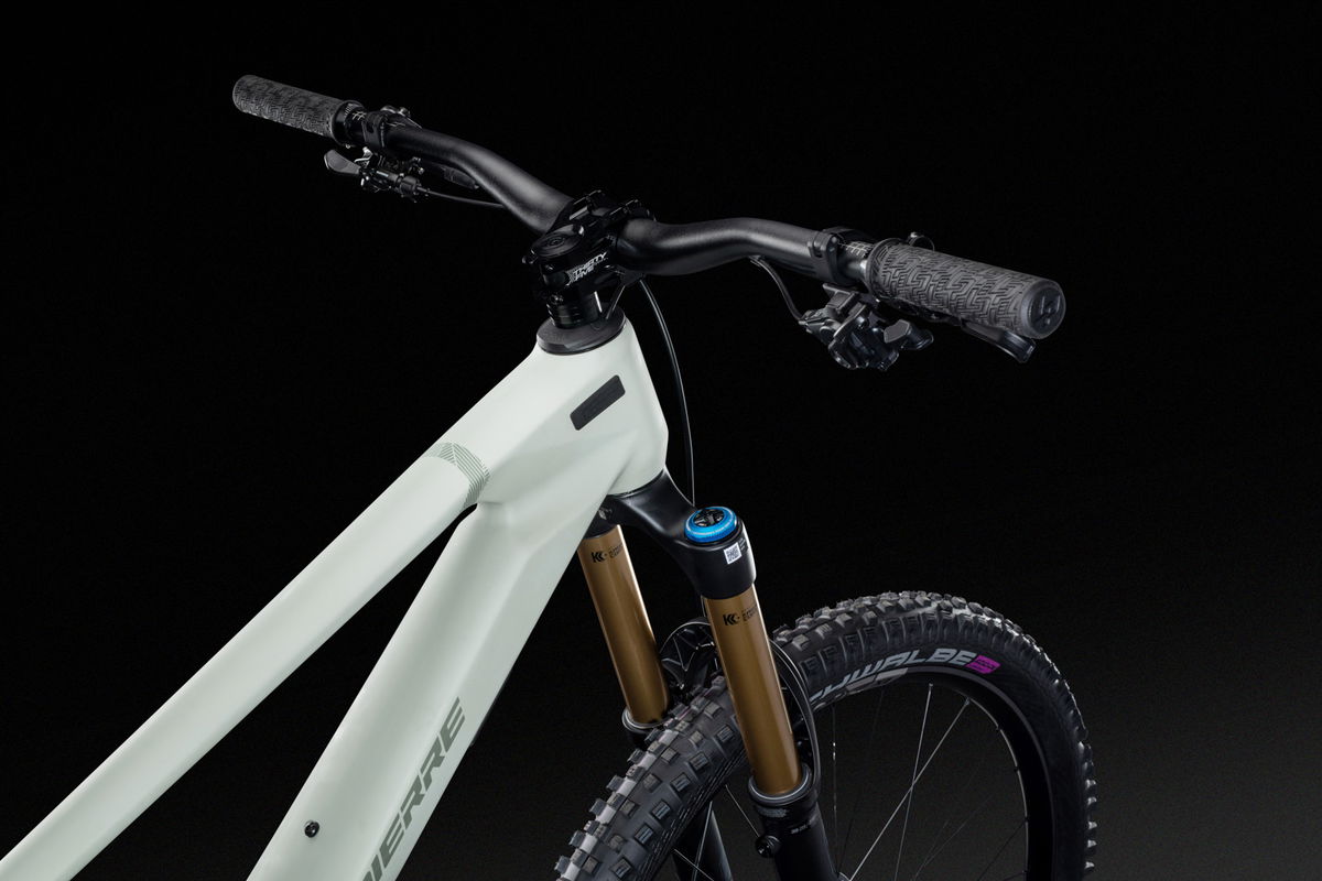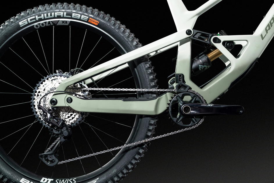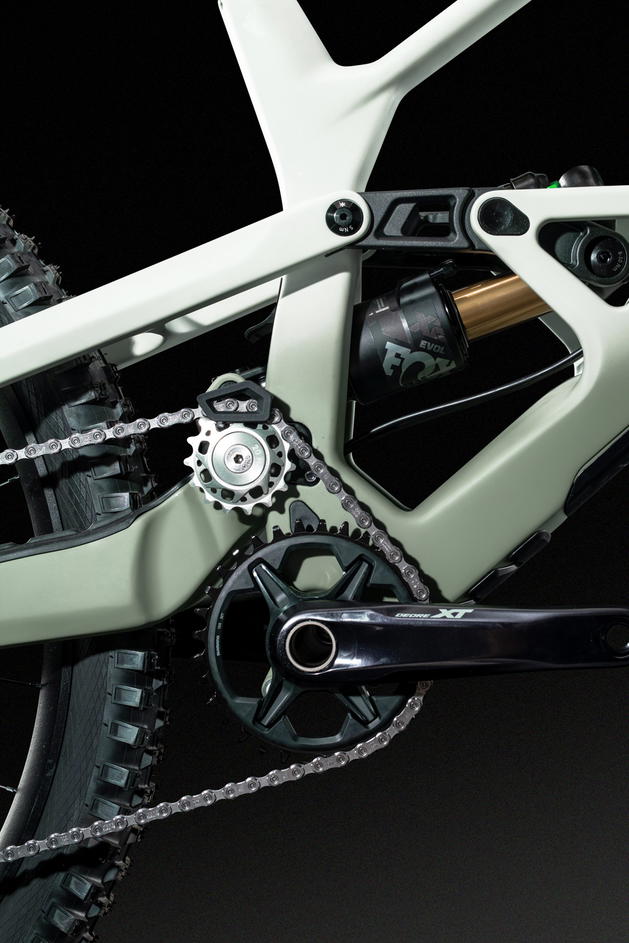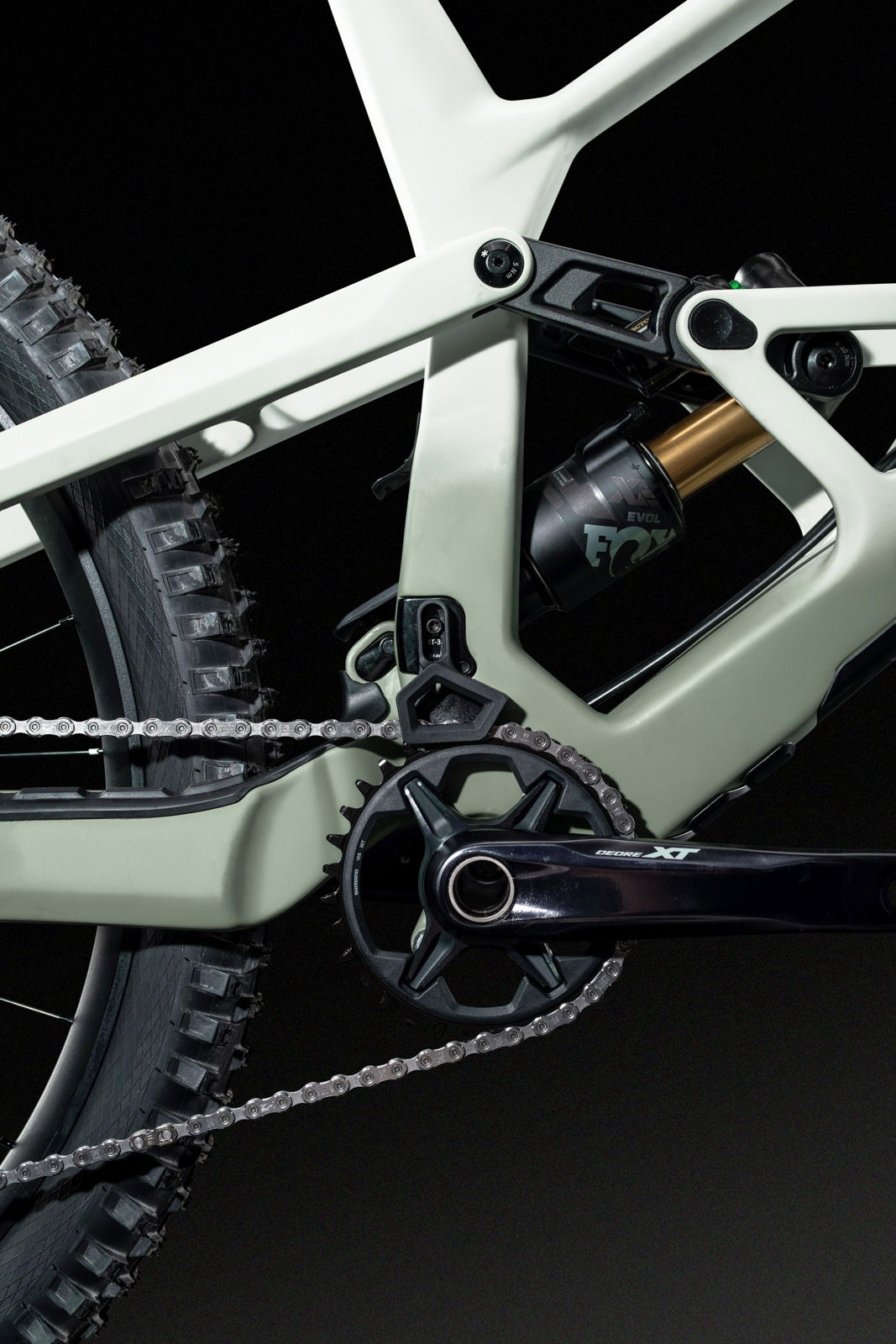 Pocit lehkosti není jen otázkou hmotnosti, ale je z velké části diktován uspořádáním karbonových vláken a konceptem Gravity Logic Project. Tlumič je nyní umístěný ještě níže a uprostřed kola, zvyšuje pocit neutrality a rovnováhy, zejména při skocích. Integrovaná schránka na nářadí (s ochranným kitem) ve spodní části dolní rámové trubky posiluje GLP koncept s nízkým těžištěm.
