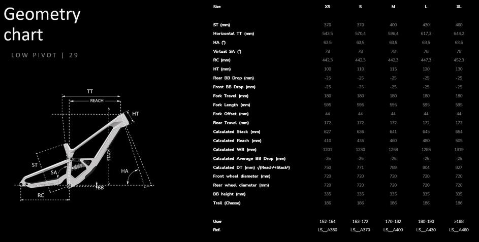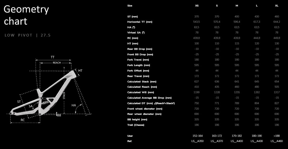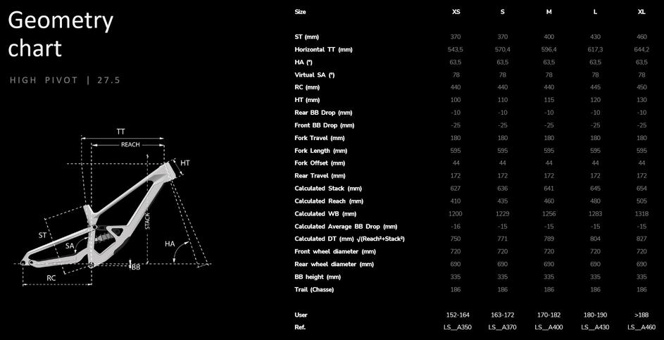 VÝŠKA BB (STŘEDU) – cílem bylo najít správnou rovnováhu mezi co nejnižší světlou výškou pro čistý výkon a potřebou enduro horského kola vyhnout se kontaktu se zemí při každém restartu, v závislosti na drsnosti terénu. Nakonec je jen 3 mm vyšší, ale kompenzuje extra zdvih.