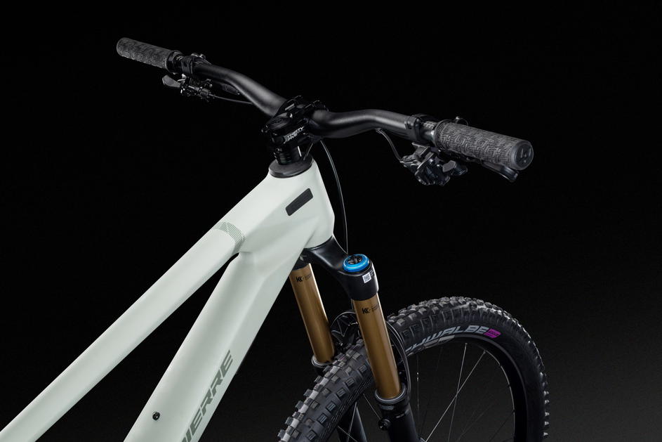 ÚHEL HLAVOVÉ TRUBKY – Úhel hlavové trubky sleduje vývoj zdvihu předního kola (+10 mm) s otevřenějším úhlem, který se přizpůsobuje 180 mm vidlice. Tento požadavek přišel také od jezdců týmu Lapierre Zipp Collective, kteří hledali větší stabilitu a přesnost pro rychlé zatáčky a sjezdy.