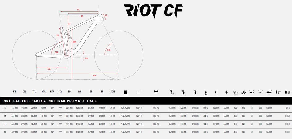 Nový RIOT CF v karbonovém kabátě! Progresivní geometrie s delším rozvorem a nízkým hlavovým úhlem posouvá vývoj o kus dopředu a dostává se tam, kam ostatní výrobci dospějí o několik let později. Celo-karbonový rám je od základu nový a je v nabídce ve dvou kategoriích: ALL MOUNTAIN a TRAIL. V nabídce je také Enduro verze, ale pouze na hliníkovém rámu. Zcela nově vyvinuté přepákování tlumiče zadní stavby s názvem Traction Link® (virtual pivot) přináší tuny zábavy a hlavně kontroly. Osa zadního náboje se při aktivaci zadního tlumiče pohybuje po kolmici vůči terénu (nikoliv po kružnici) a ochotně tak překonává koberec z kořenů či balvanů. Vzpřímená sedlovka, položená vidlice a delší zadní vzpěry jsou hlavními vlastnostmi nejmodernější geometrie, která stojí na GHOSTem vyvinutém algoritmu SUPERFIT®. Ten udává optimální délky jednotlivých rámových trubek v závislosti na výšce jezdce. Nenápadná a plně integrovaná teleskopická sedlovka Eightpins® hýčká jezdce bezkonkurenčním velkým zdvihem a hladkým chodem. Dalším plusem jsou plášťové inserty PTN® (pouze u Full Party verze), které minimalizují poškození ráfku a umožňují nižší tlaky, a tak i lepší přilnavost v náročných situacích. Navíc, jako jediné na trhu, zaručí pohodový dojezd i při defektu. Tak naskočte a vyrazte se bavit. …EXPECT RIOT!