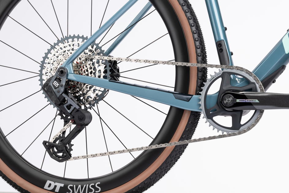 - Asket CF LTD: Metalicky stříbrný rám je vybaven elektrickou sadou SRAM Force 1x12 a karbonovými koly DT Swiss GRC 1100 Dicut.