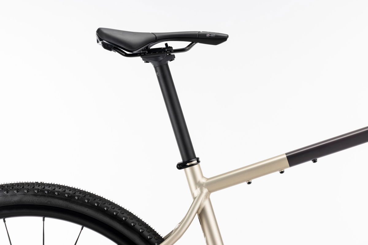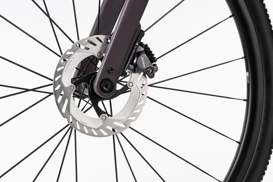 Základem je hliníkový rám s čistými liniemi díky pokročilému hydroformingu a s hladkými, ručně zabroušenými sváry. Vnitřní vedení kabeláže přidává na celkové eleganci a pevné osy zajišťují vysokou tuhost a dlouhou životnost. Lehká karbonová vidlice výrazně snižuje vibrace a přispívá k lepší kontrole v rychlosti i na horším povrchu. Kombinace těchto dvou materiálů dává kolu ideální poměr mezi pevností, komfortem a nízkou hmotností.