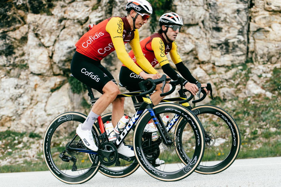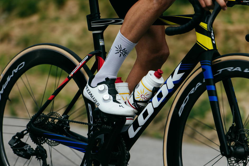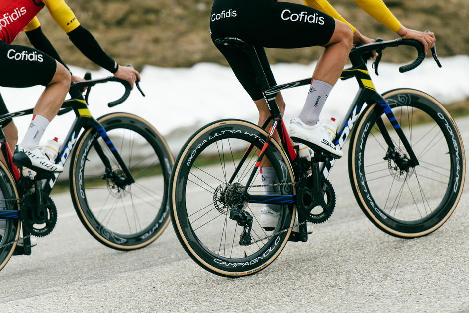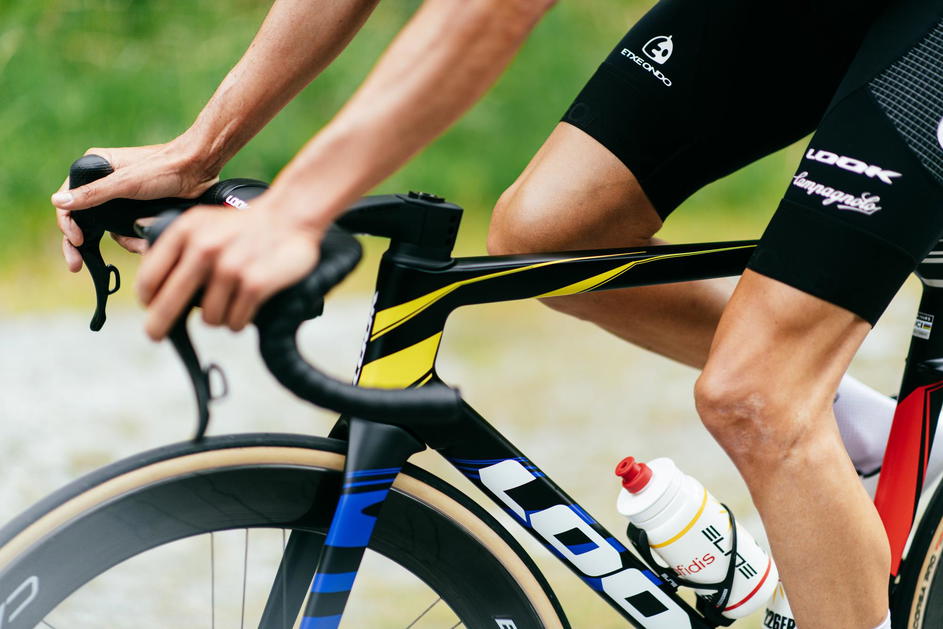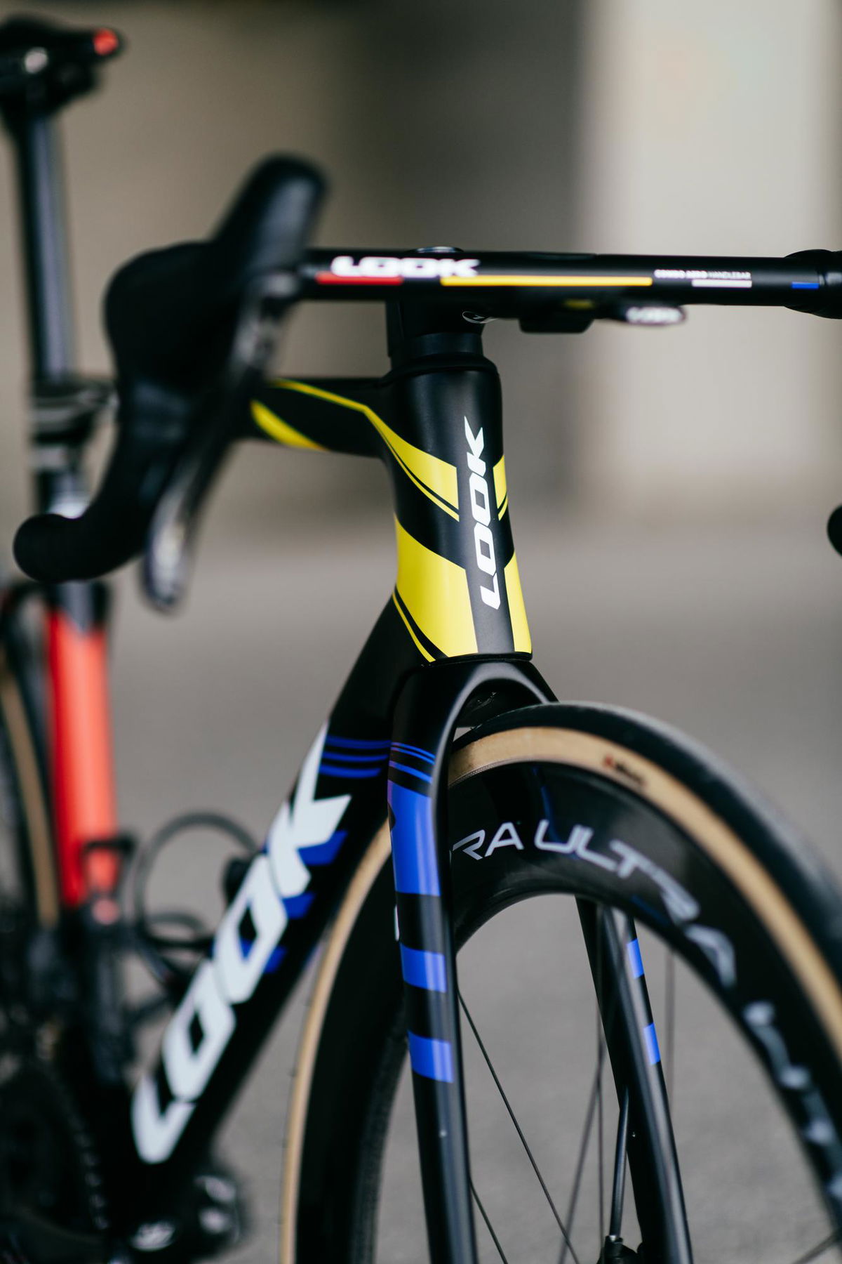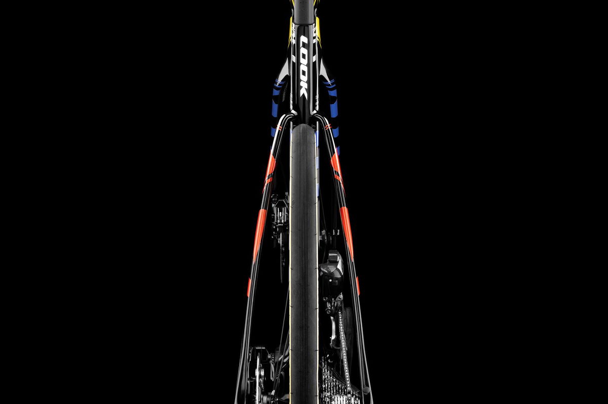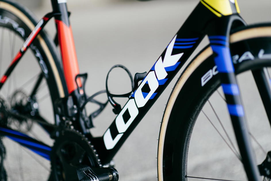 O perfektní přenos výkonu a aerodynamiku se starají karbonová kola Campagnolo Bora Ultra WTO 60 Team Edition ve speciální závodní barevné úpravě, obutá do plášťů Vittoria Corsa Pro. Kombinace, kterou ocení každý, kdo jede na hraně. Čistě černý lak ušetří 40 gramů a nechává vyniknout ikonickým barevným akcentům inspirovaným Mondrianovým stylem, který je pro značku LOOK typický.
