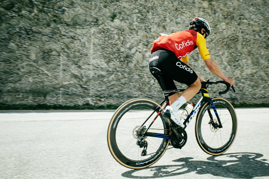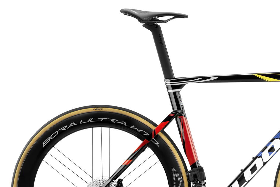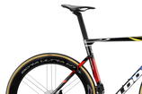 Srdcem kola je ručně vyráběný karbonový rám s vysokým podílem Ultra High Modulus vláken, který zajišťuje výjimečný poměr tuhosti a hmotnosti. Geometrie vychází z potřeb profesionálních závodníků, kteří vyžadují maximální přesnost v řízení, výbušnost v akceleraci a jistotu v rychlých sjezdech.
