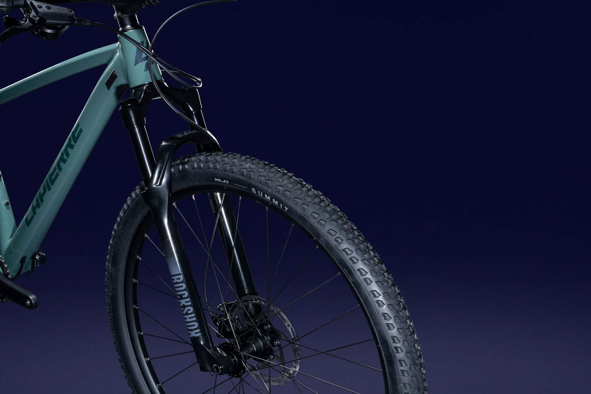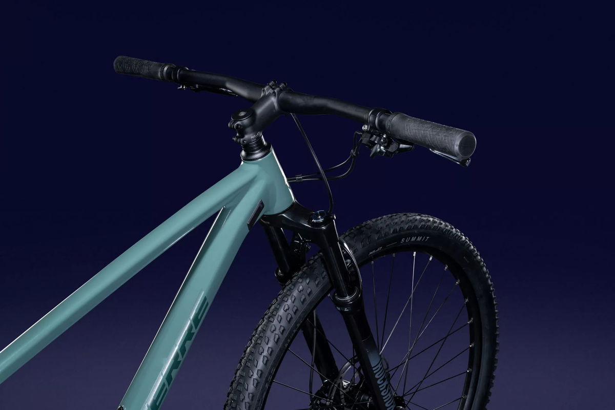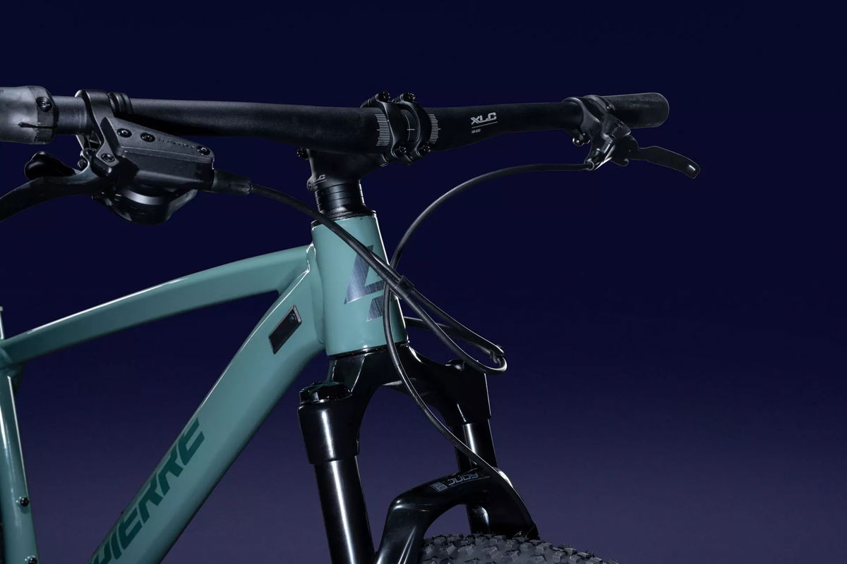 PRORACE 1.9 – základní hlinkový rám je rozumně osazen jedno-převodníkovým pohonem Shimano Cues 1x9 a pružinovou vidlicí SR Suntour se 100 mm zdvihu
