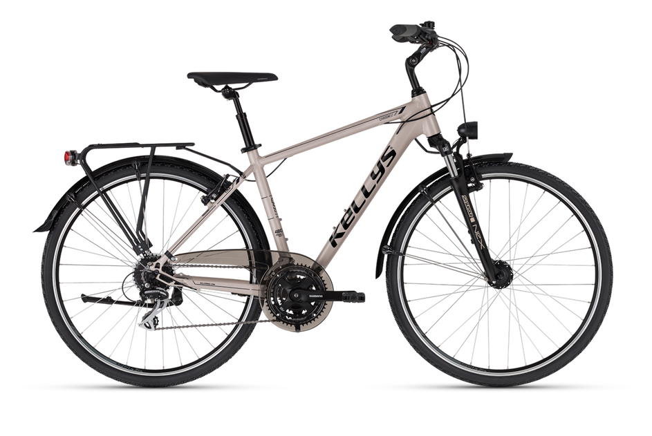 rám KELLYS Tour Profile - internal routing, integrated kickstand mount vidlice SR SUNTOUR NEX P, 63 mm, coil spring (threaded steerer) kliky SHIMANO TY301 (48x38x28T) - délka 175 mm měnič SHIMANO Altus M370 (direct mount) přesmykač SHIMANO TY601 (34.9 mm) řazení SHIMANO ST-EF500-8R EZ-fire Plus…