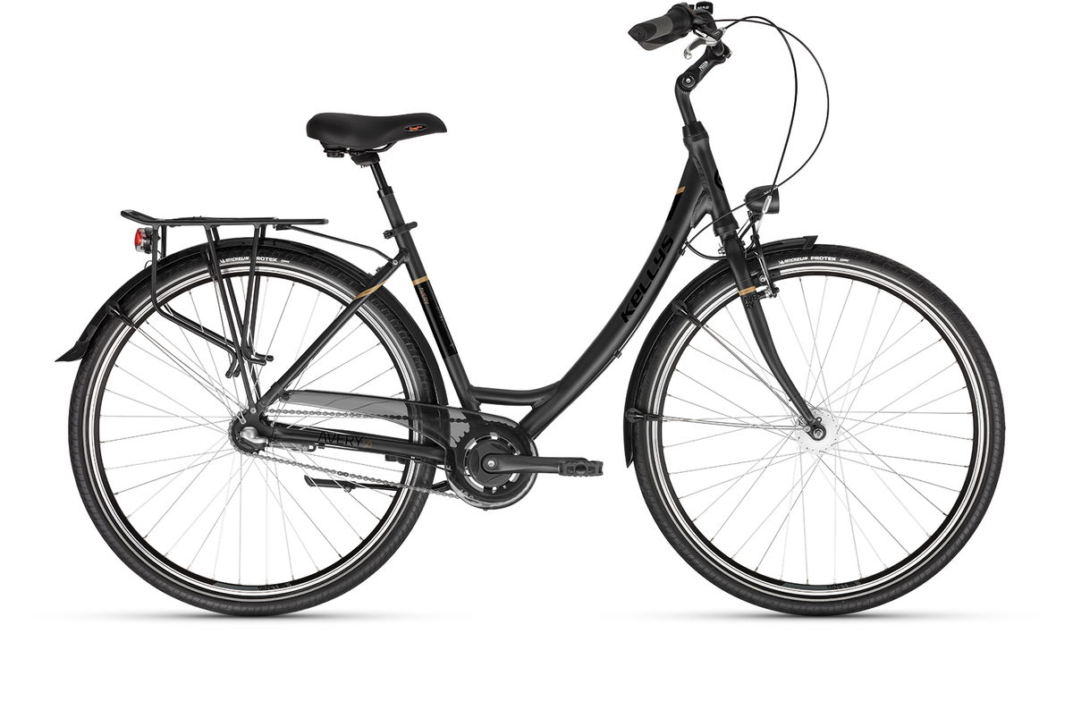rám KELLYS Aluminium alloy monotube 28 vidlice hi-ten steel unicrown (se závitem) kliky PROWHEEL (38T) - délka 170 mm řazení SHIMANO Nexus SL-3S42E Revoshift počet převodů 3 pastorky SHIMANO for internal hub 21T řetěz KMC Z6 brzdy APSE V-brake / protišlapací brazda SHIMANO brzdové páky TEKTRO…