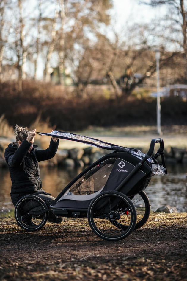 Jednomístný dětský vozík HAMAX Cocoon ONE je lehký a pohodlný cyklistický vozík pro aktivní rodiny. Vyniká pevnou konstrukcí, promyšlenou ergonomií a snadným ovládáním, díky čemuž zvládne městské cyklojízdy i delší výlety po zpevněných cestách. Velká okna nabízejí skvělý výhled, větrací panely zlepšují cirkulaci vzduchu a praktické prvky usnadňují každodenní používání.