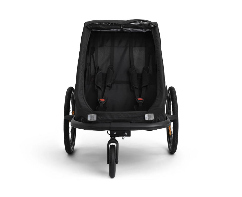 Traveller je lehký a praktický dvoumístný vozík za kolo, který lze snadno přeměnit na kočárek výměnou ramena za kolo za kolečko kočárku. S prostorem pro dvě děti a zavazadla, pohodlnými sedadly, velkými okny a nastavitelnou rukojetí je ergonomický a uživatelsky přívětivý.