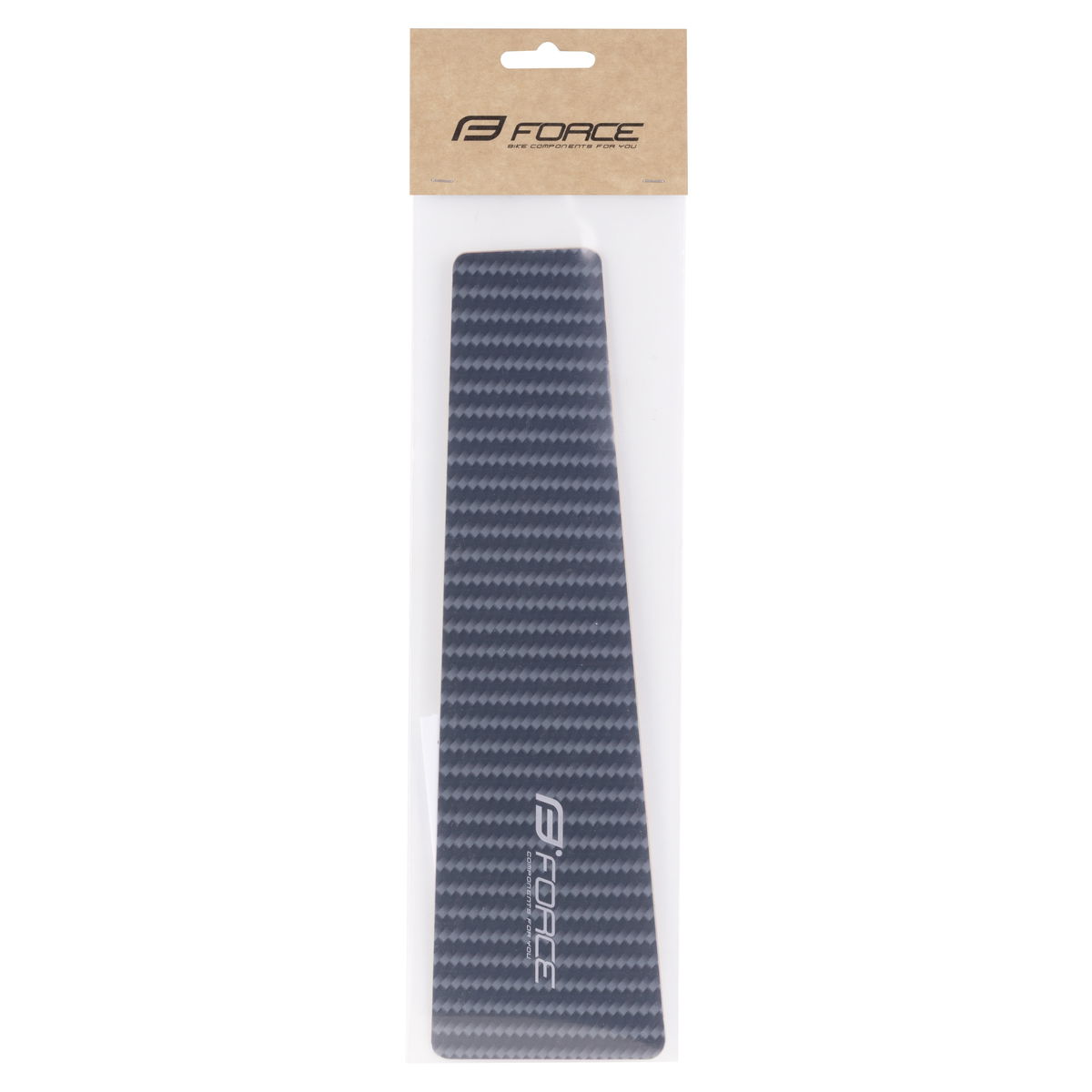 ochranná nálepka FORCE pod řetěz nebo na spodní rámovou trubku Imitace karbonu rozměr: 27,5 x 5-8 cm materiál: 3M, PVC (Polyuretanová) fólie, s designem karbonu výrobce materiálu: 3M baleno v sáčku s kartou FORCE