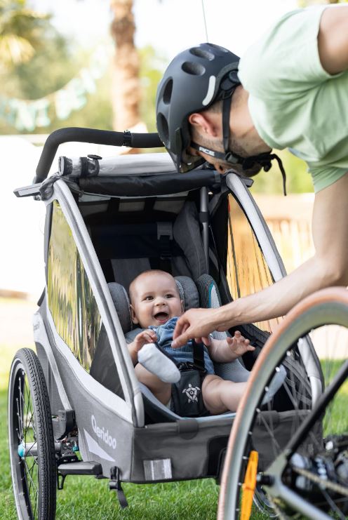 Dětská skořápka zabere jedno místo ve vozíku. Proto lze, při použití ve dvou-sedadlové verzi, umístit 2 dětské vajíčka nebo jedno dětské vajíčko a jedno sedící dítě.