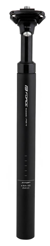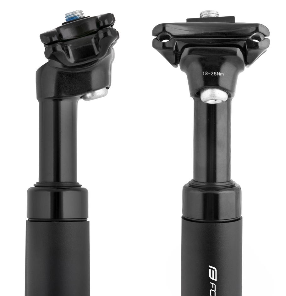zdvih 40mm průměr: 30,9 mm, délka: 355 mm offset: 9 mm (vyosení zámku) maximální doporučená hmotnost jezdce: 100 kg možnost nastavení pružení materiál: Al, matná černá hmotnost: 588 g baleno na kartě FORCE