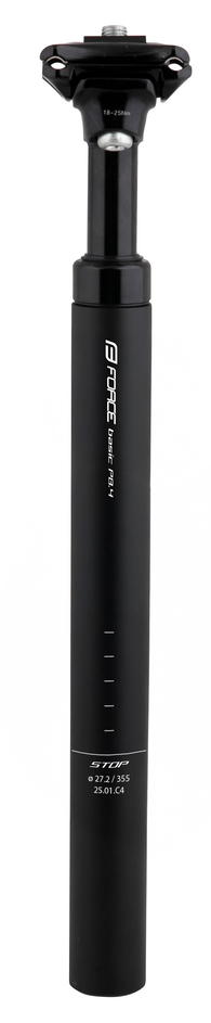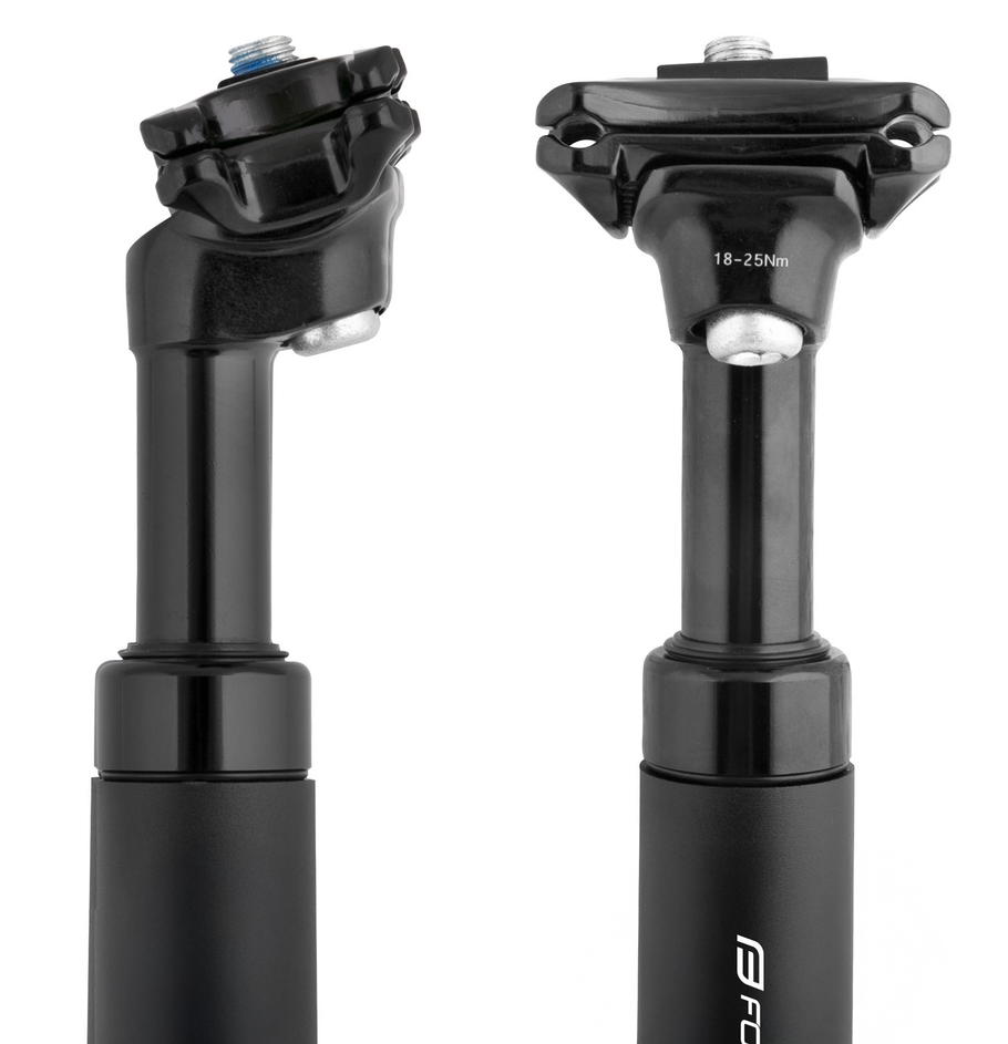 zdvih 40mm průměr: 27,2 mm, délka: 355 mm offset: 9 mm (vyosení zámku) maximální doporučená hmotnost jezdce: 100 kg možnost nastavení pružení materiál: Al, matná černá hmotnost: 580 g baleno na kartě FORCE
