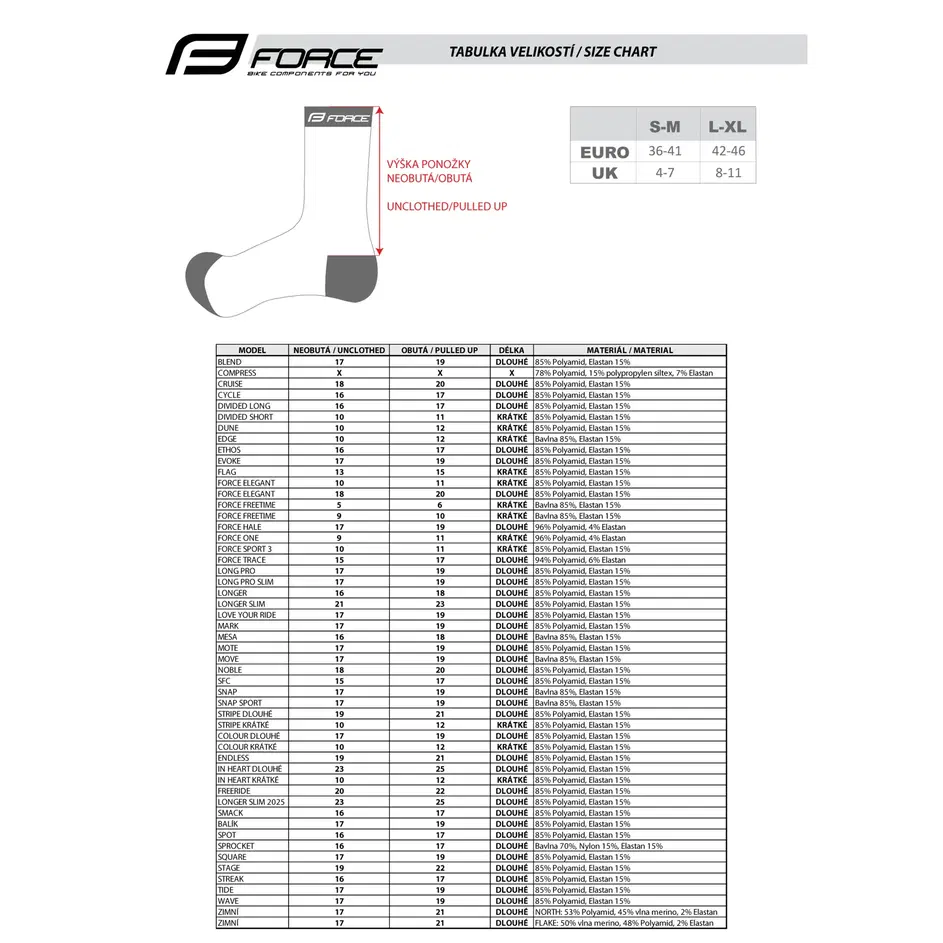 vyšší cyklistické ponožky FORCE i pro další sporty